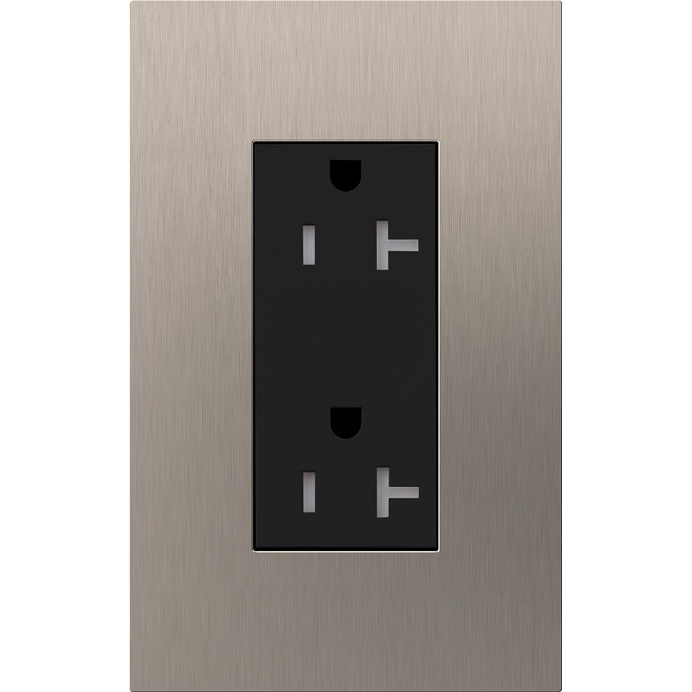 Duplex 20 A receptacle, tamper resistant, 125V/20A with faceplate in satin nickel