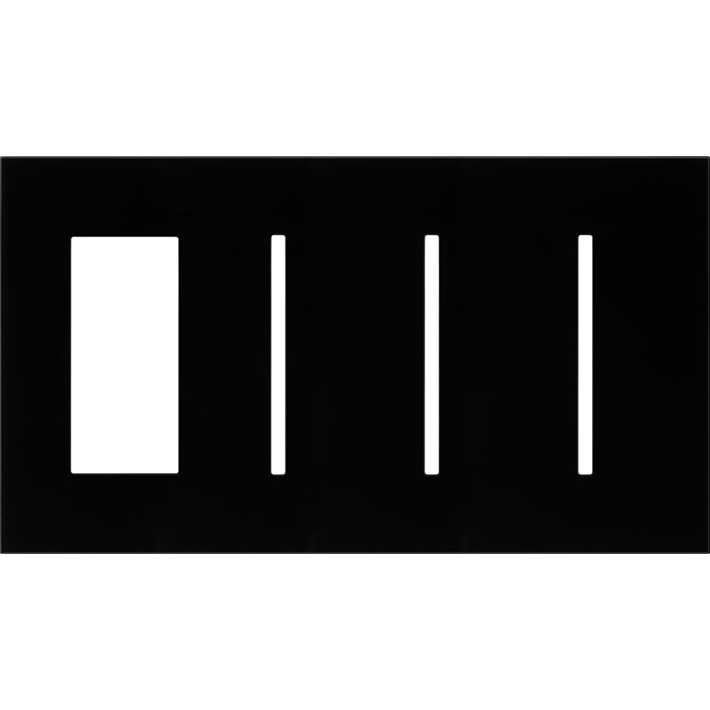 Multigang Wallplate for New Architectural Controls and Accessories, Four-gang for 1 accessory or Palladiom keypad and 3 Grafik T controls in clear black glass