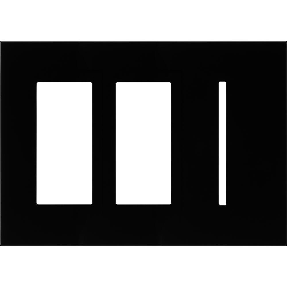 Multigang Wallplate for New Architectural Controls and Accessories, Three-gang for 2 accessories or Palladiom keypads and 1 Grafik T control in clear black glass