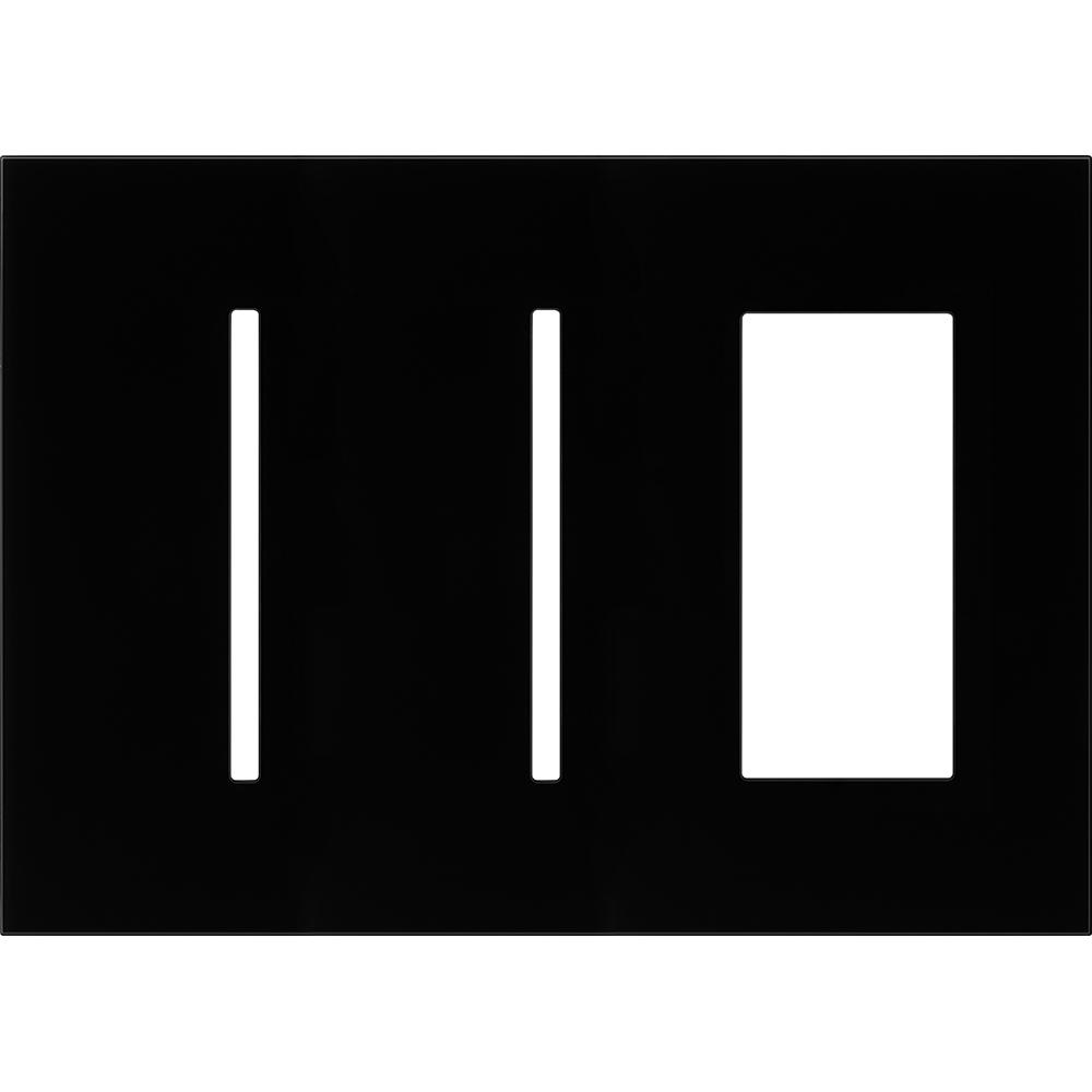 Multigang Wallplate for New Architectural Controls and Accessories, Three-gang for 2 Grafik T controls and 1 accessory or Palladiom keypad in clear black glass