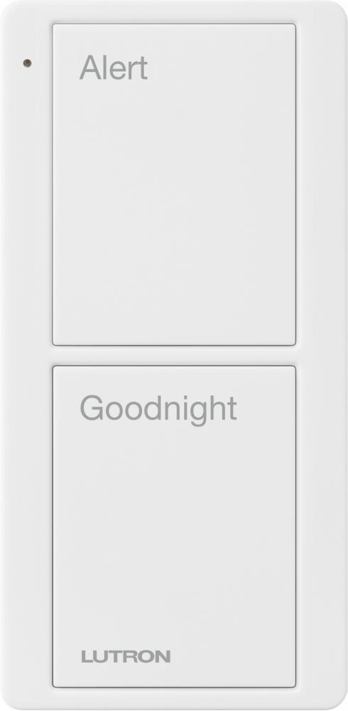 Lutron 2-Button Scene Pico Smart Remote, with Pre-engraved Text-"Alert/Goodnight" - White