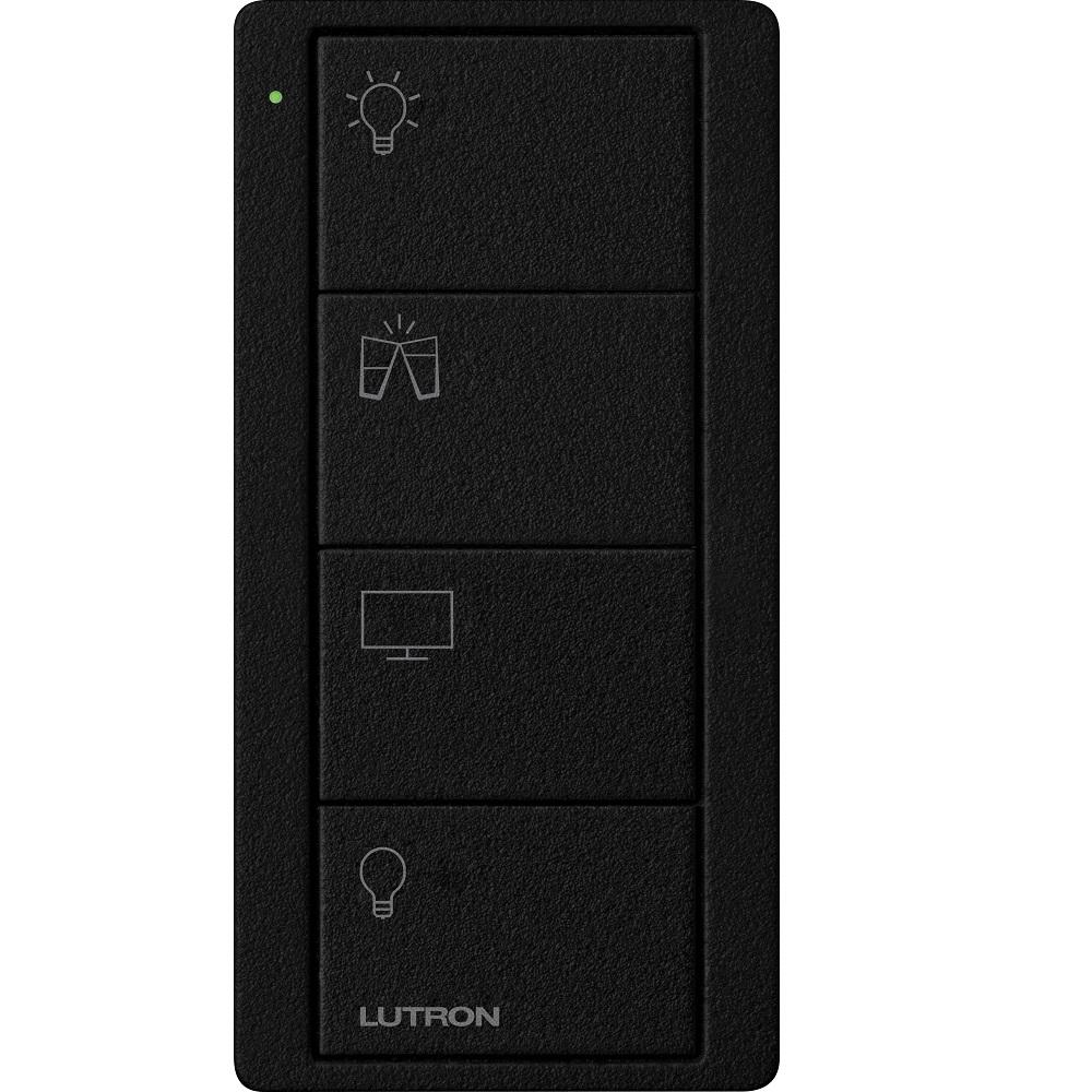 Pico Wireless Control, 4-button, 434 MHz, scene control of lights, family room engraving, in midnight