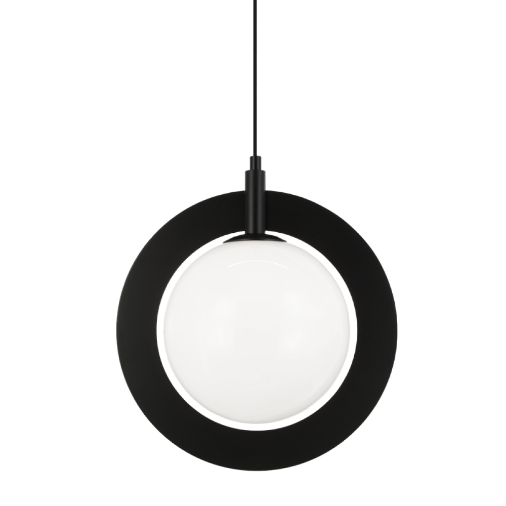 A stunning yet simple pendant designed with circular elements. Astro features Clear or Opal Glass, surrounded by a bold metal ring. Available in 2 finishes: Aged Gold Brass and Black.