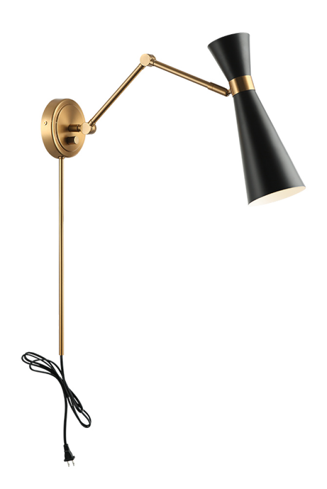 The Blaze series is both fun and functional. Available in 2 finish combinations: Aged Gold Brass with White and Aged Gold Brass with Black. Features a built in dimmer and adjustable shade for directional lighting.