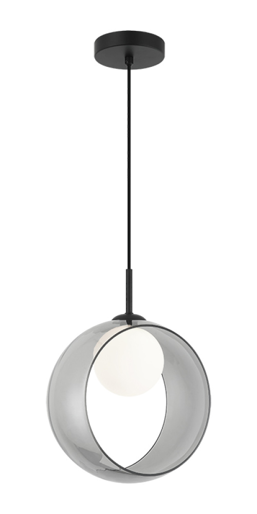 1 LT "DELCIA" D11.02" BK+ SM GLASS PENDANT G9 40W