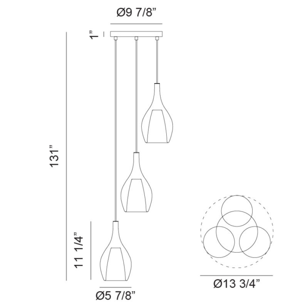 3 LT "JERICHO" D13.75" ROUND CANOPY MATTE BLACK+ SM GLASS PENDANT E26