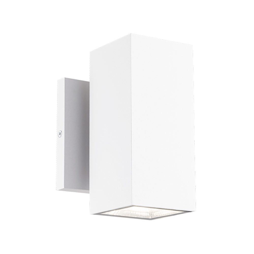 A minimalist, modern LED exterior wall light with a cube-shaped design. This type of light fixture typically directs light downward, but also has an option for upward & downward, making it ideal for accent lighting on outdoor walls, pathways, or near doorways. Its clean lines and compact design make it a versatile option for both residential and commercial outdoor spaces, fitting well into contemporary and minimalist architectural styles.