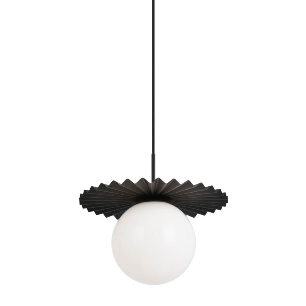 Modern Ruff – As the name implies, is a design nod to the mid 16th century to early 17th century adding a hint of nostalgia with a modern twist. Available in Black or Matte Gold, they come in pendant, wall sconce and flush mount. History meets modern day design and functionality.