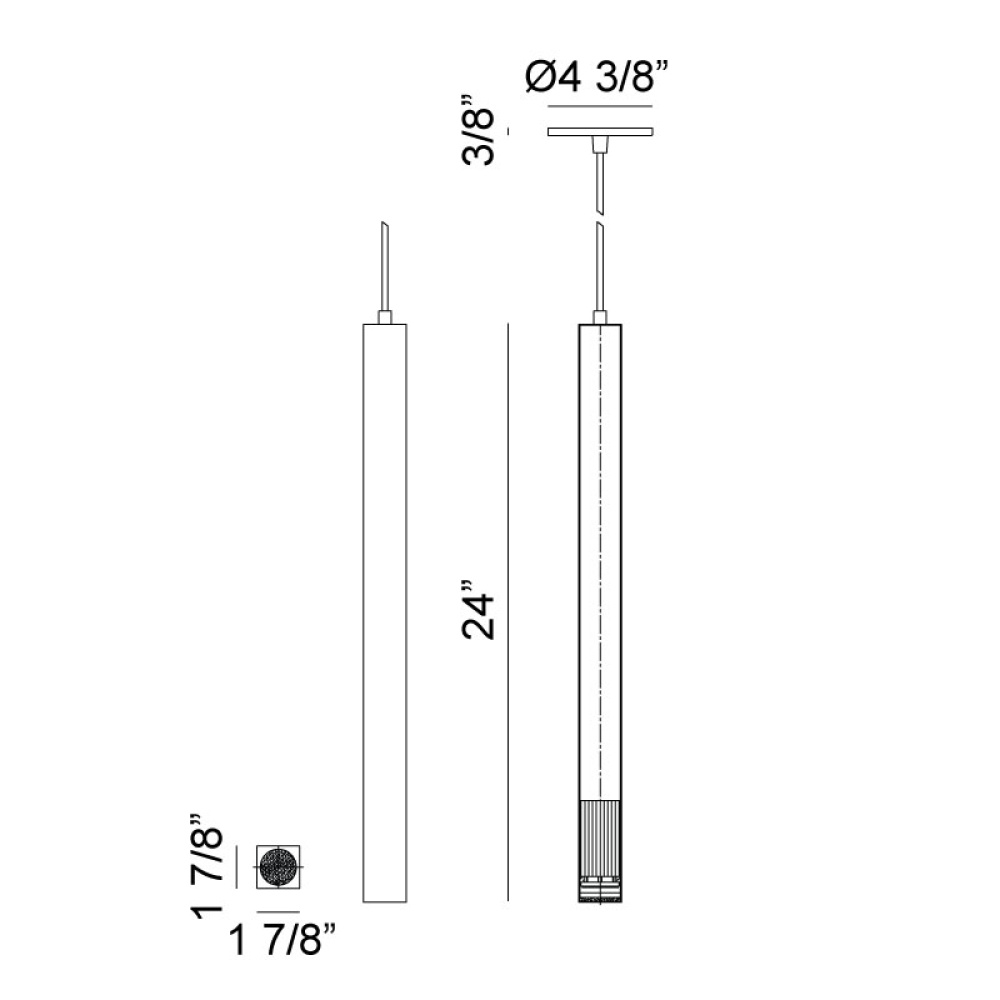 This modern drop pendant designed using a square tube has an industrial feel.When hung on its own or grouped, it will add a subtle design element. The Royce series comes in either an Aluminum or Oxidized Black finish with a black fabric cord. Both finishes are available in 2 sizes.