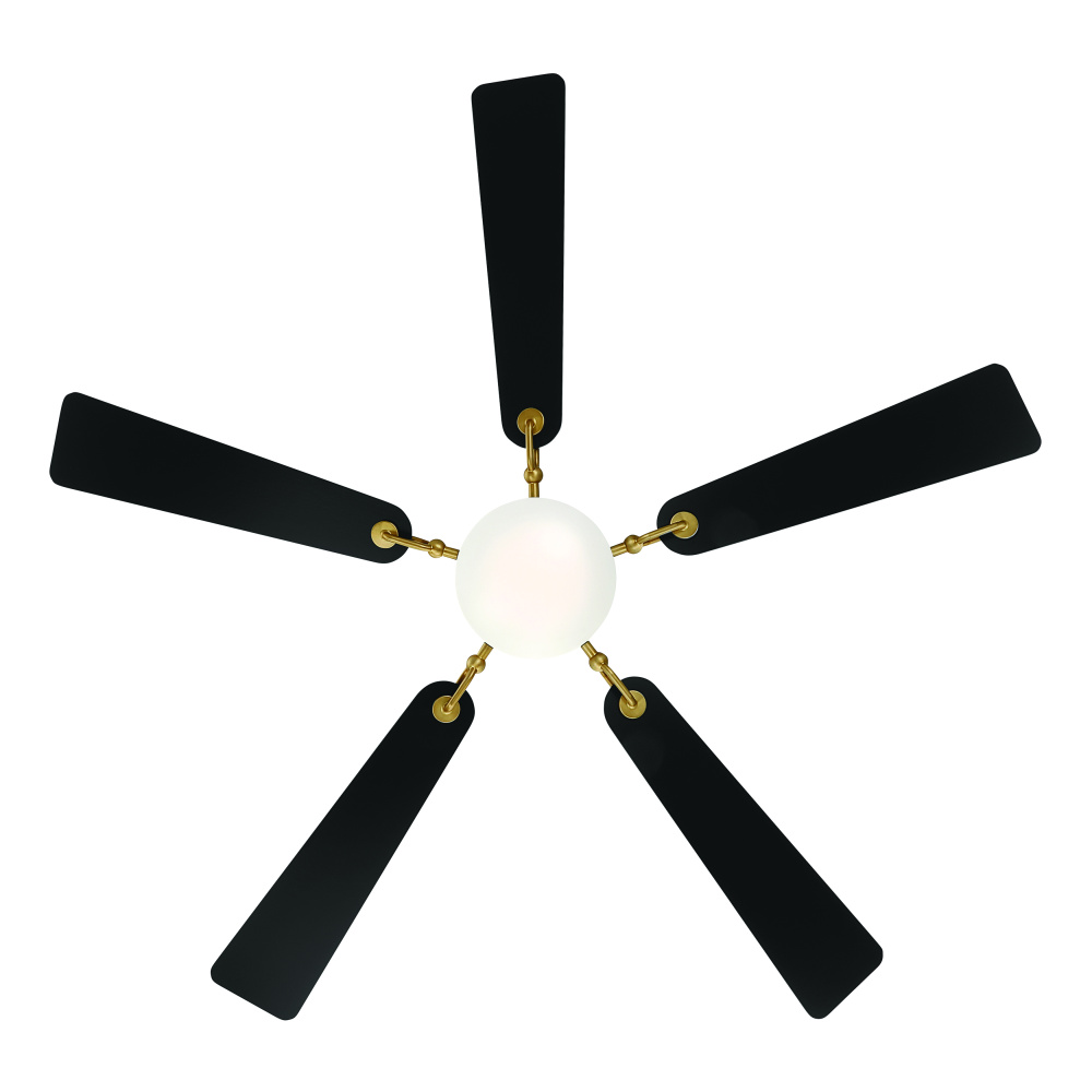 Featuring a Heritage Brass finish with Coal blades and Etched shade.