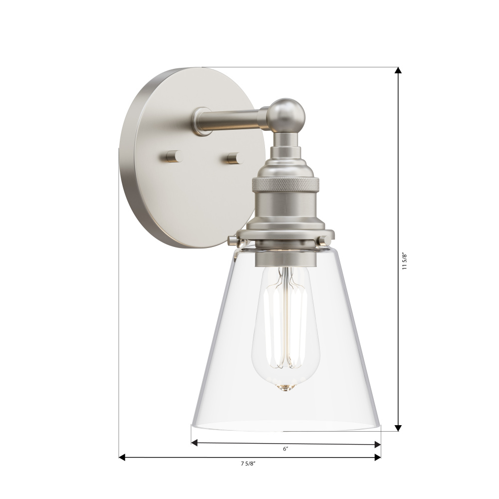 1-Light Bath Sconce - Brushed Nickel with Clear Glass