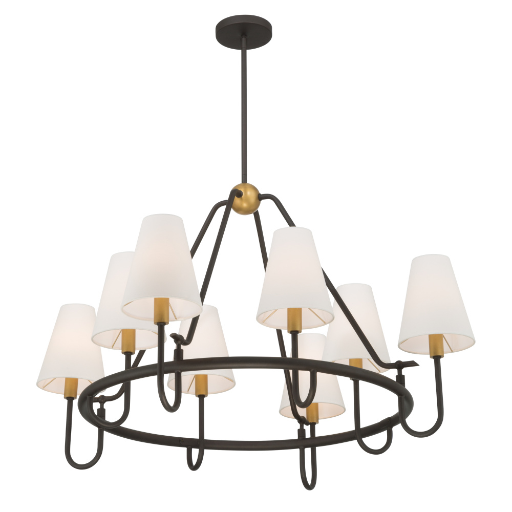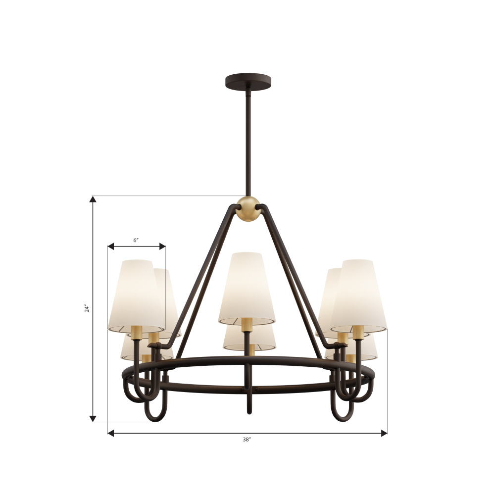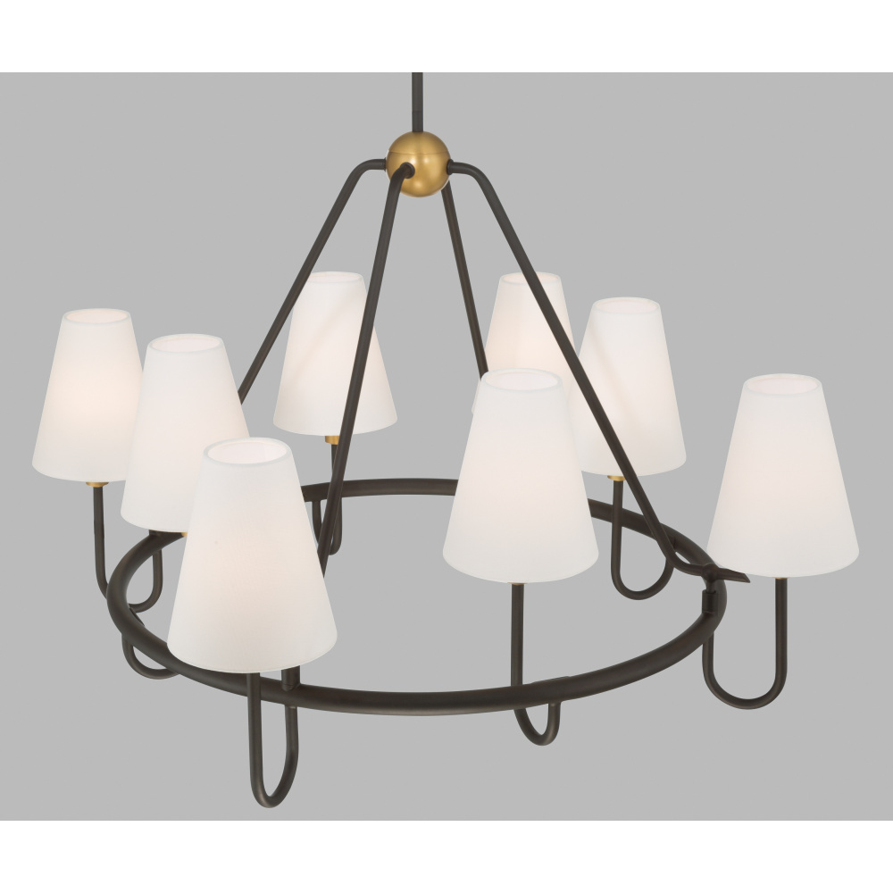 8-Light Pendant - Legacy Brass and Dark Bronze with White Linen
