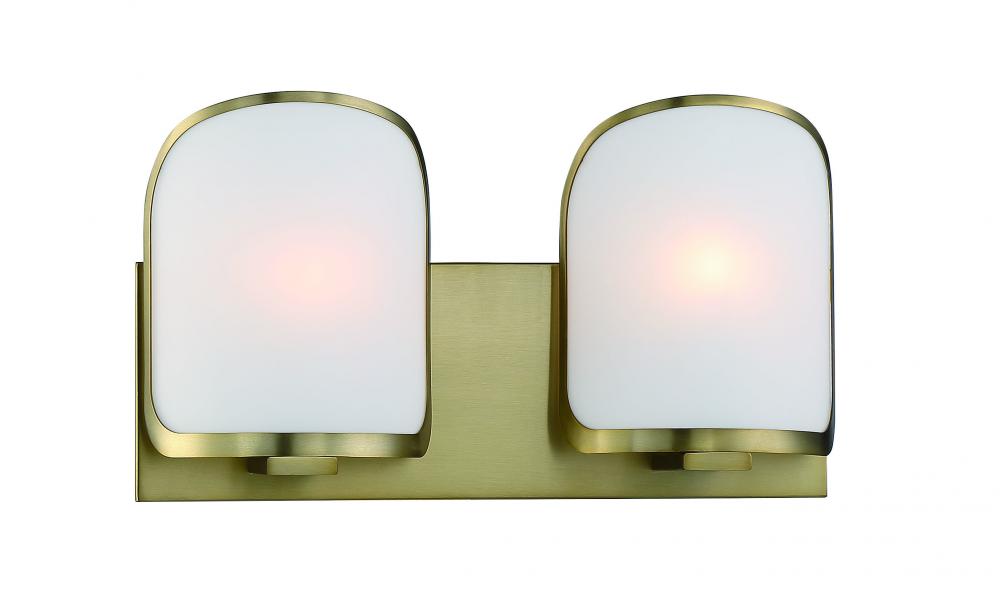 2 Light Bath in Soft Brass Finish with Etched White Glass
