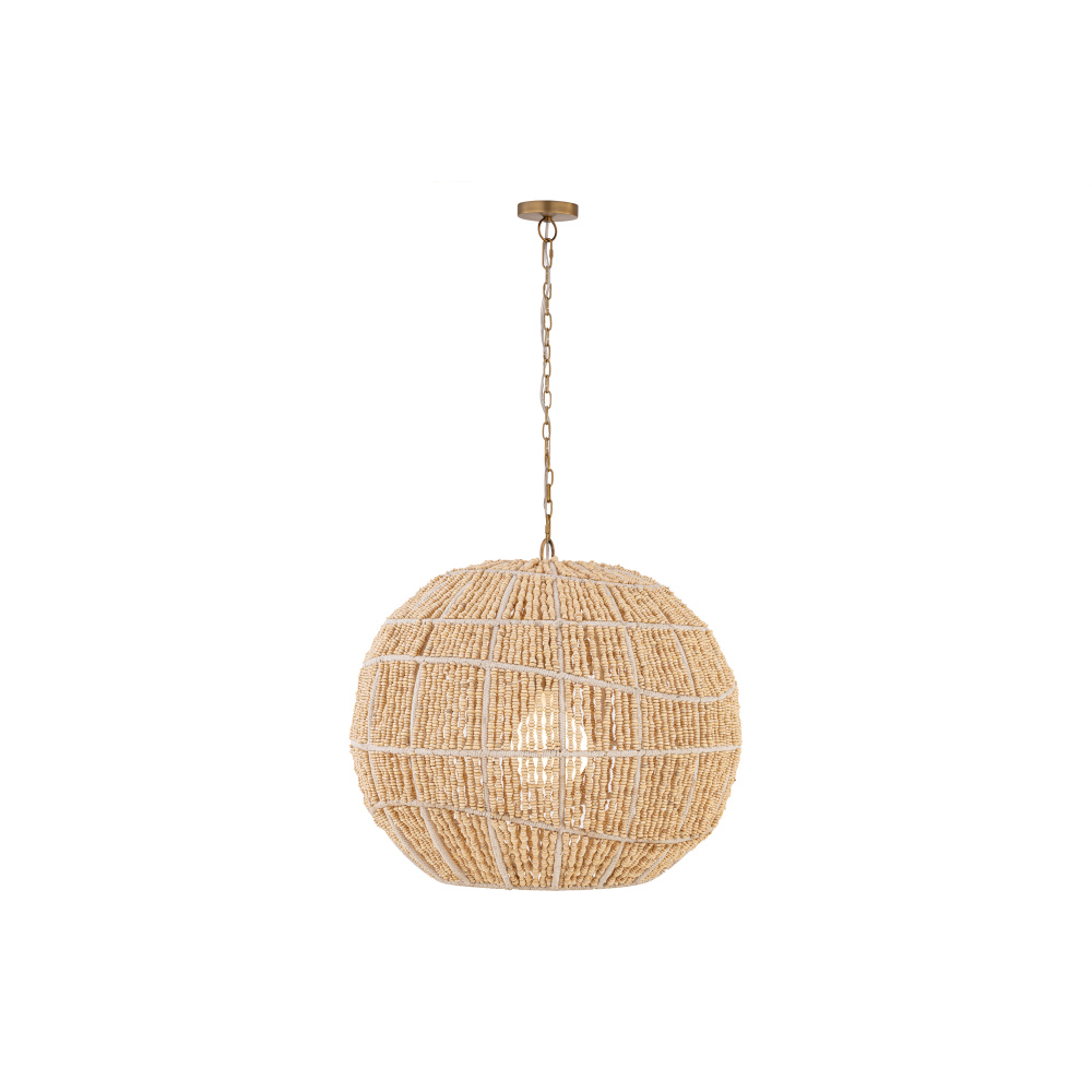 1-Light Pendant - Legacy Brass and Ivory Wood Beads