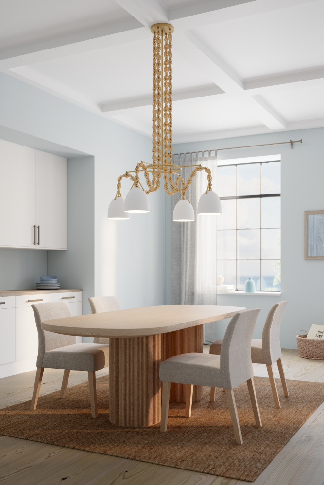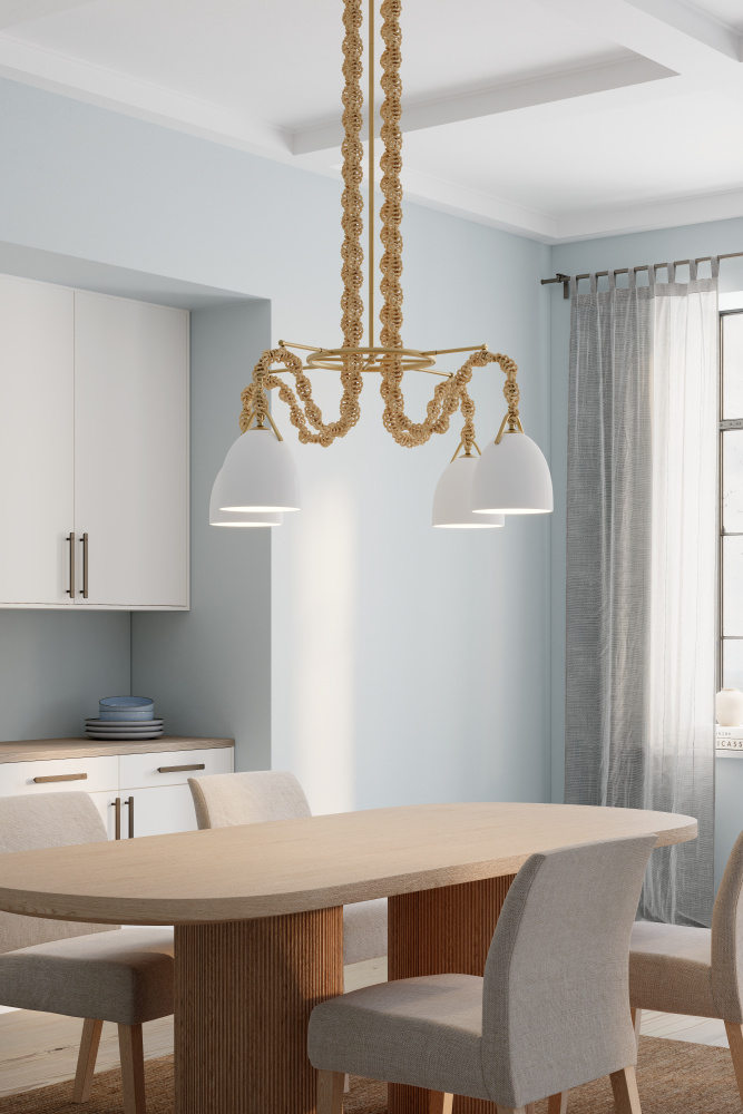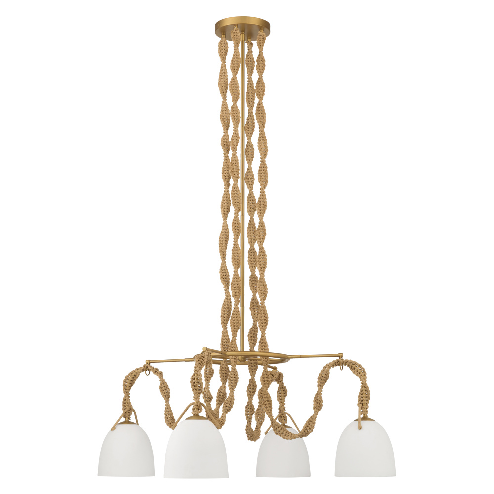 4-Light Pendant - Legacy Brass with White Ceramic and Paper Rope