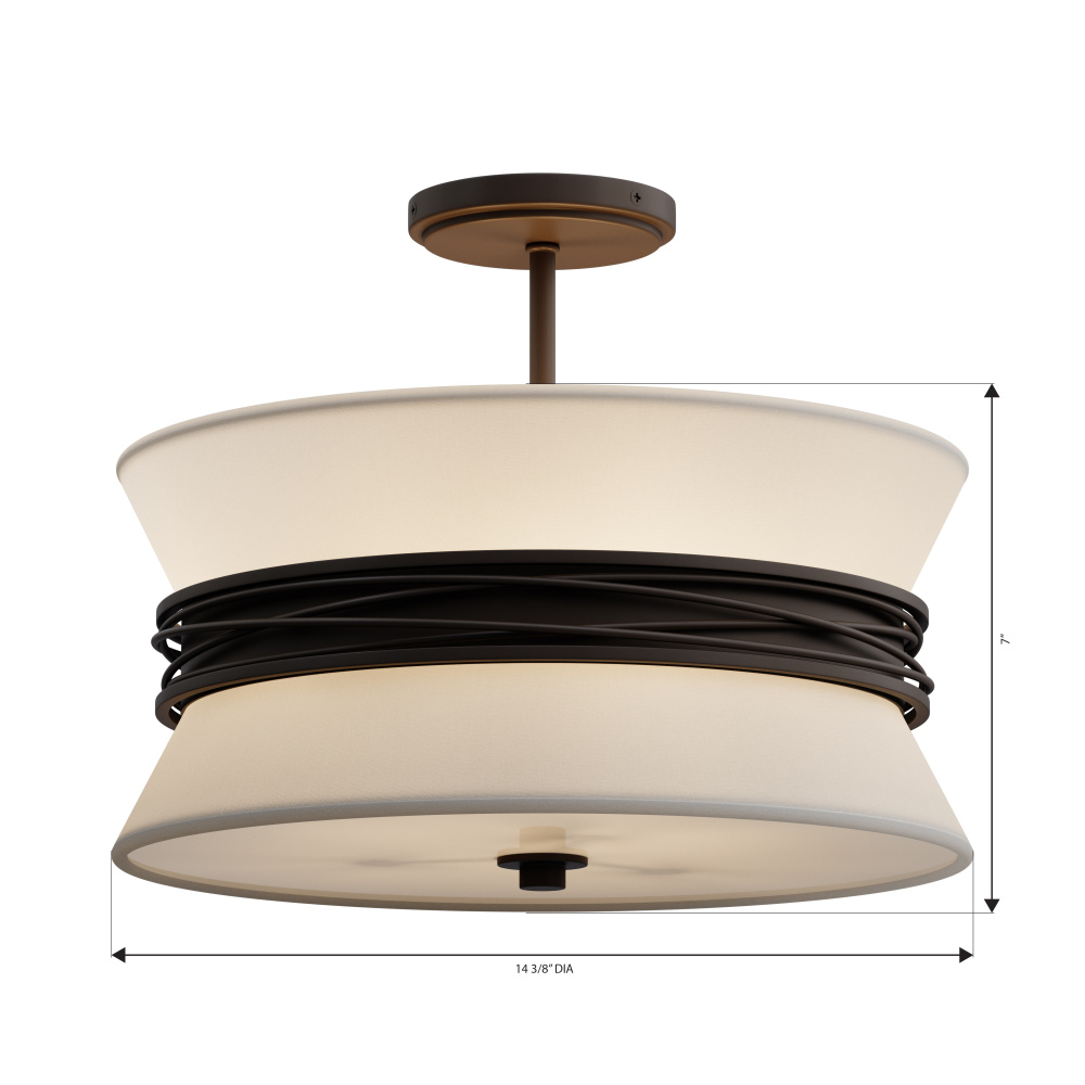 3-Light Semi-Flush Mount - Dark Bronze with White Glass and Linen