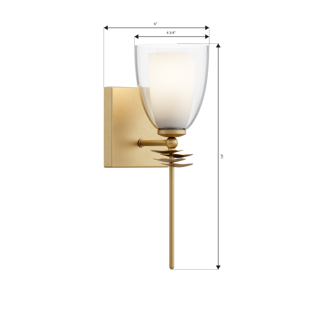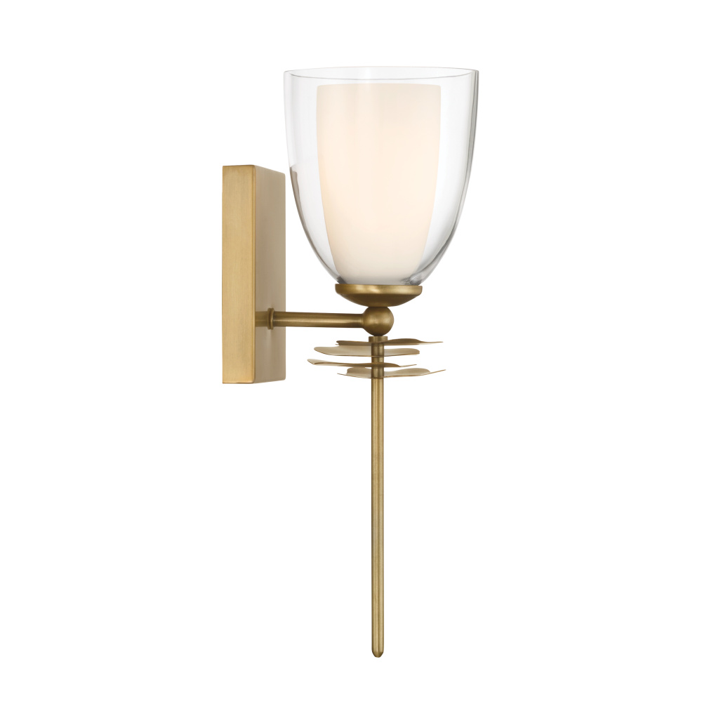 1-Light Wall Sconce - Legacy Brass with Clear and Opal White Glass