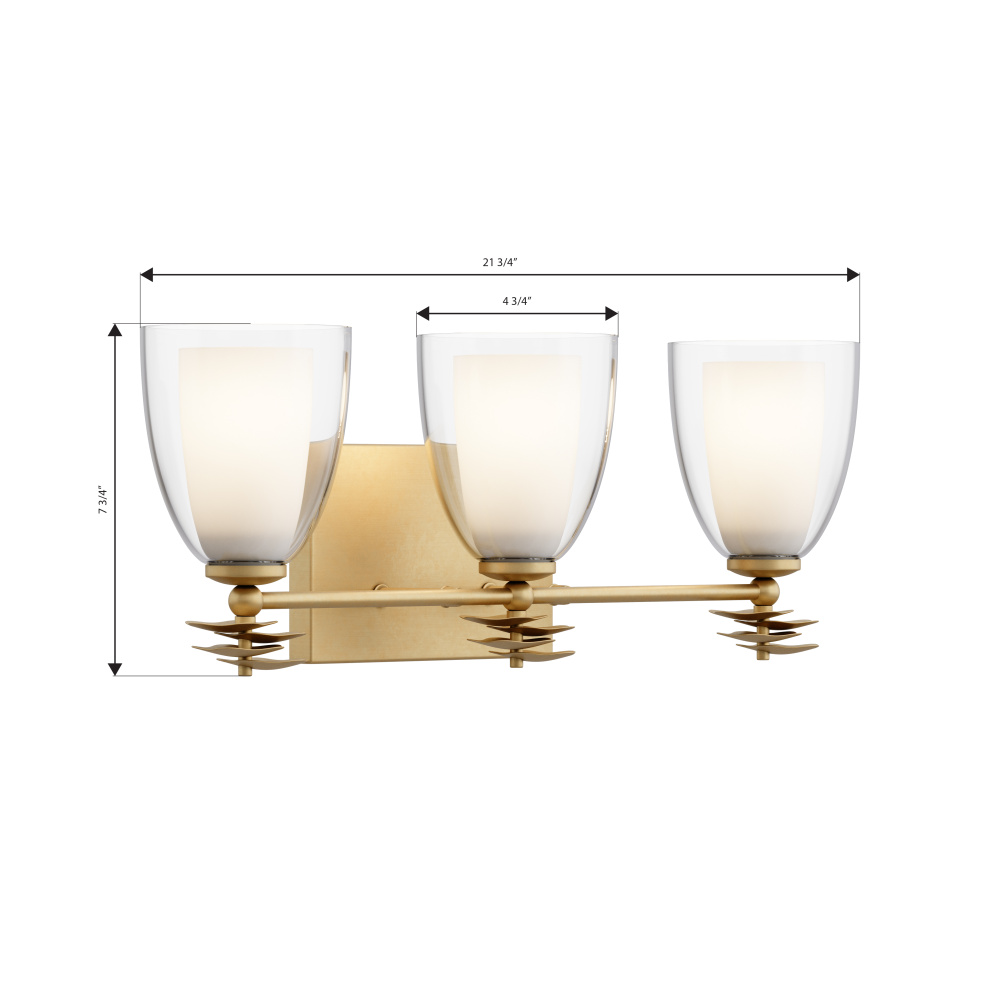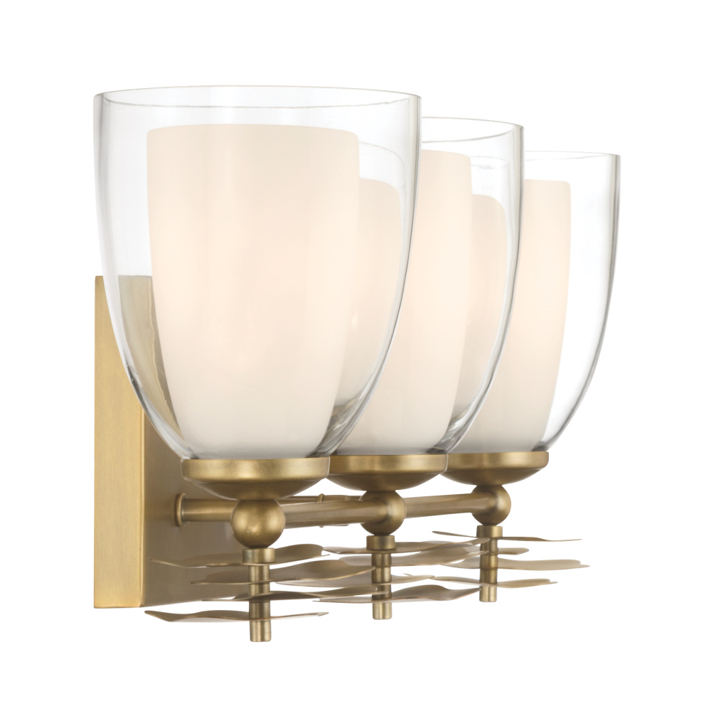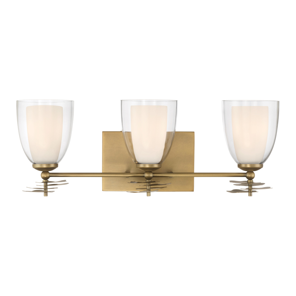 3-Light Vanity - Legacy Brass and Clear with Opal White Glass