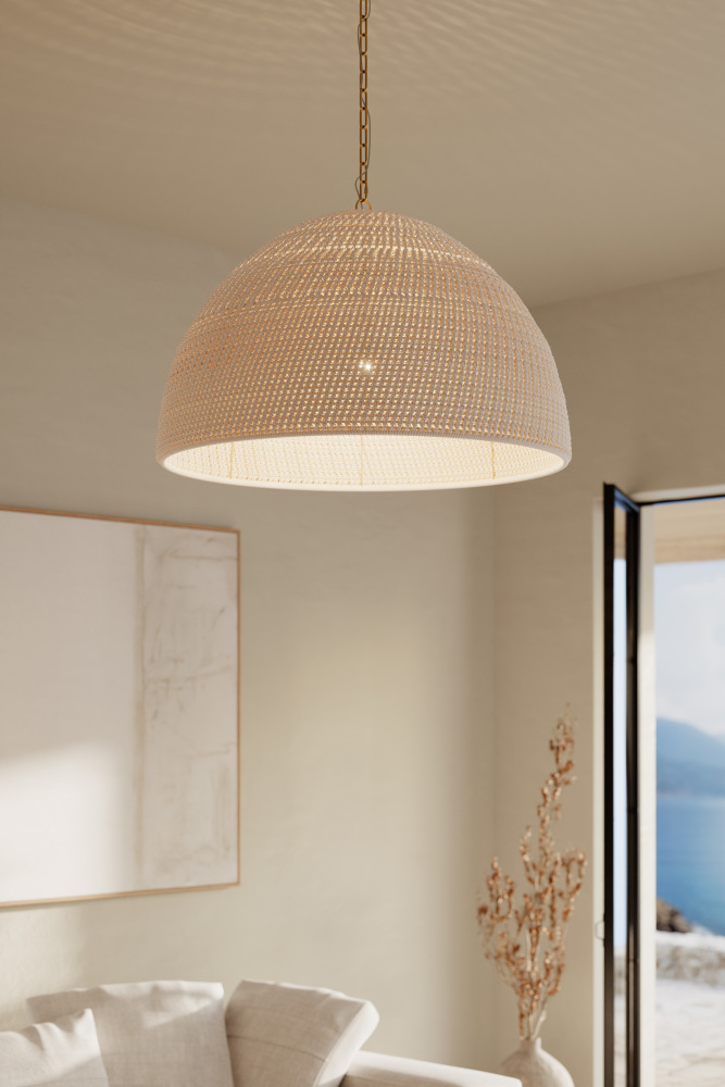 The Fernwood pendant blends transitional lines with warm, inviting illumination.