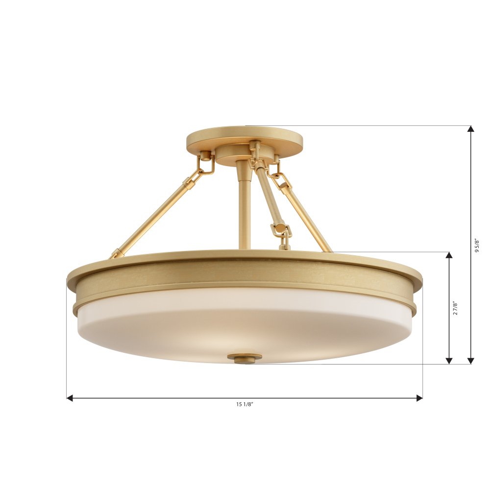 3-Light Semi-Flush Mount - Legacy Brass with Etched Opal Glass