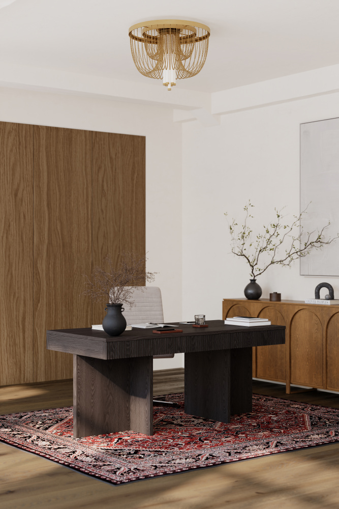 The Jezelle flush mount blends transitional lines with warm, inviting illumination.