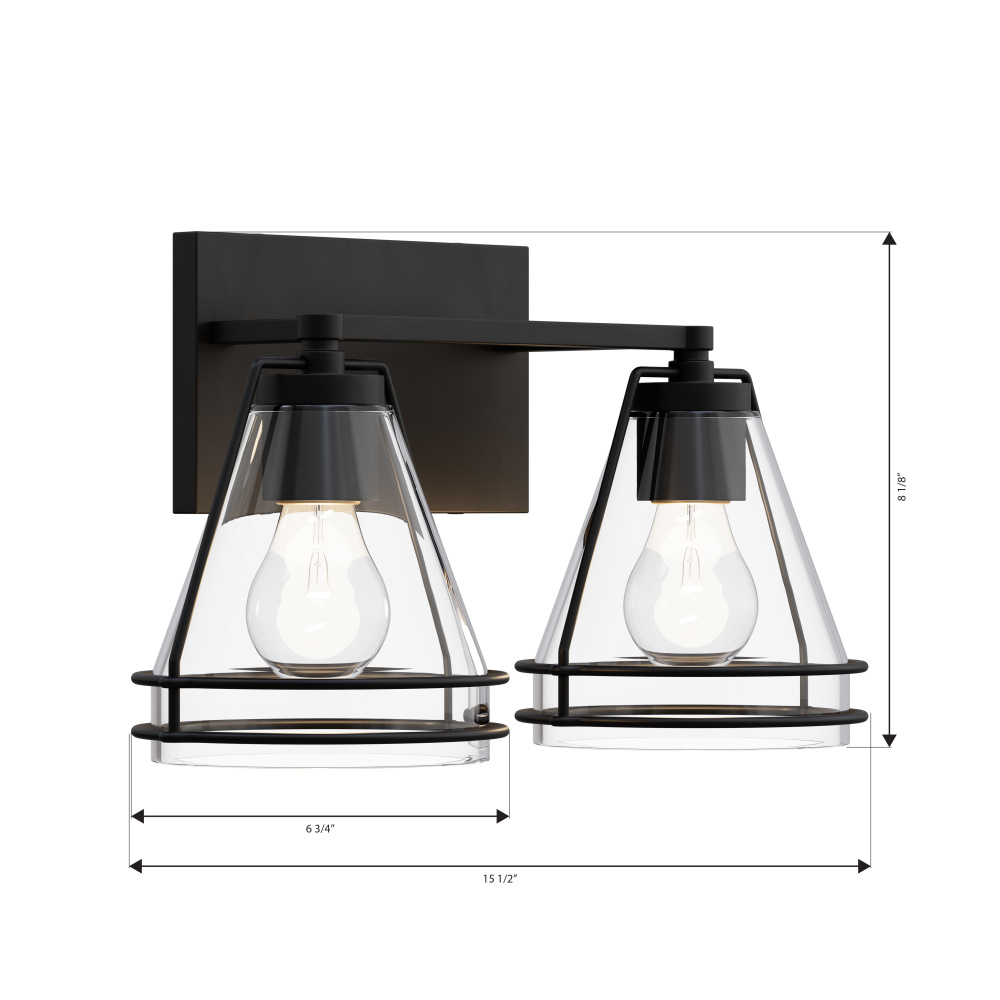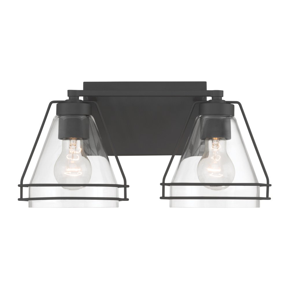 2-Light Vanity - Dark Matte Black with Clear Glass