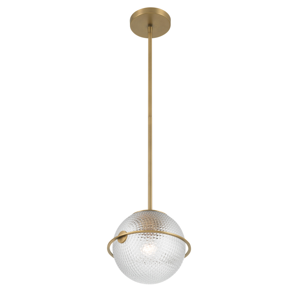 1-Light Mini Pendant - Legacy Brass with Clear Square Textured Glass