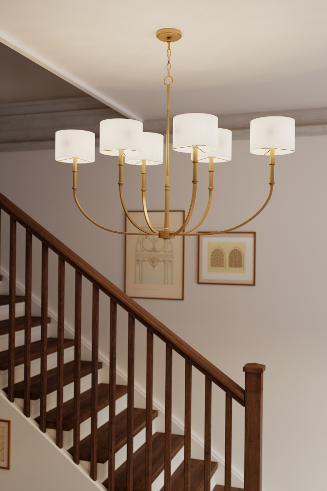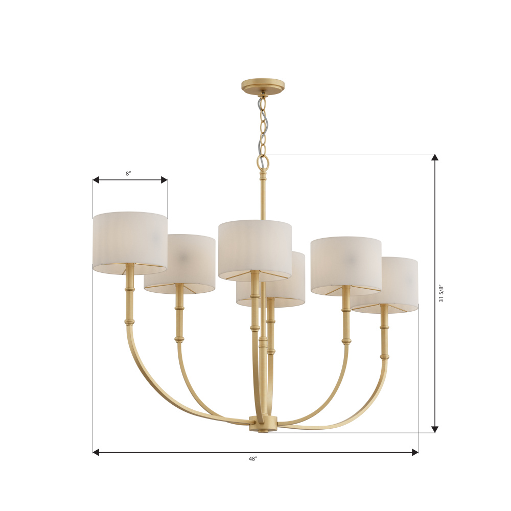 6-Light Linear Chandelier - Legacy Brass with White Linen