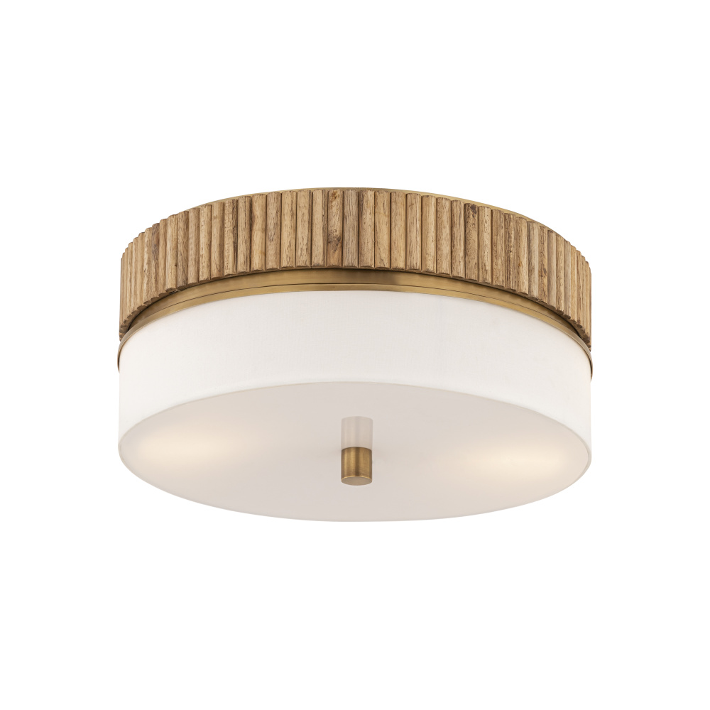 3-Light Semi-Flush Mount - Legacy Brass and Natural Wood with White Linen