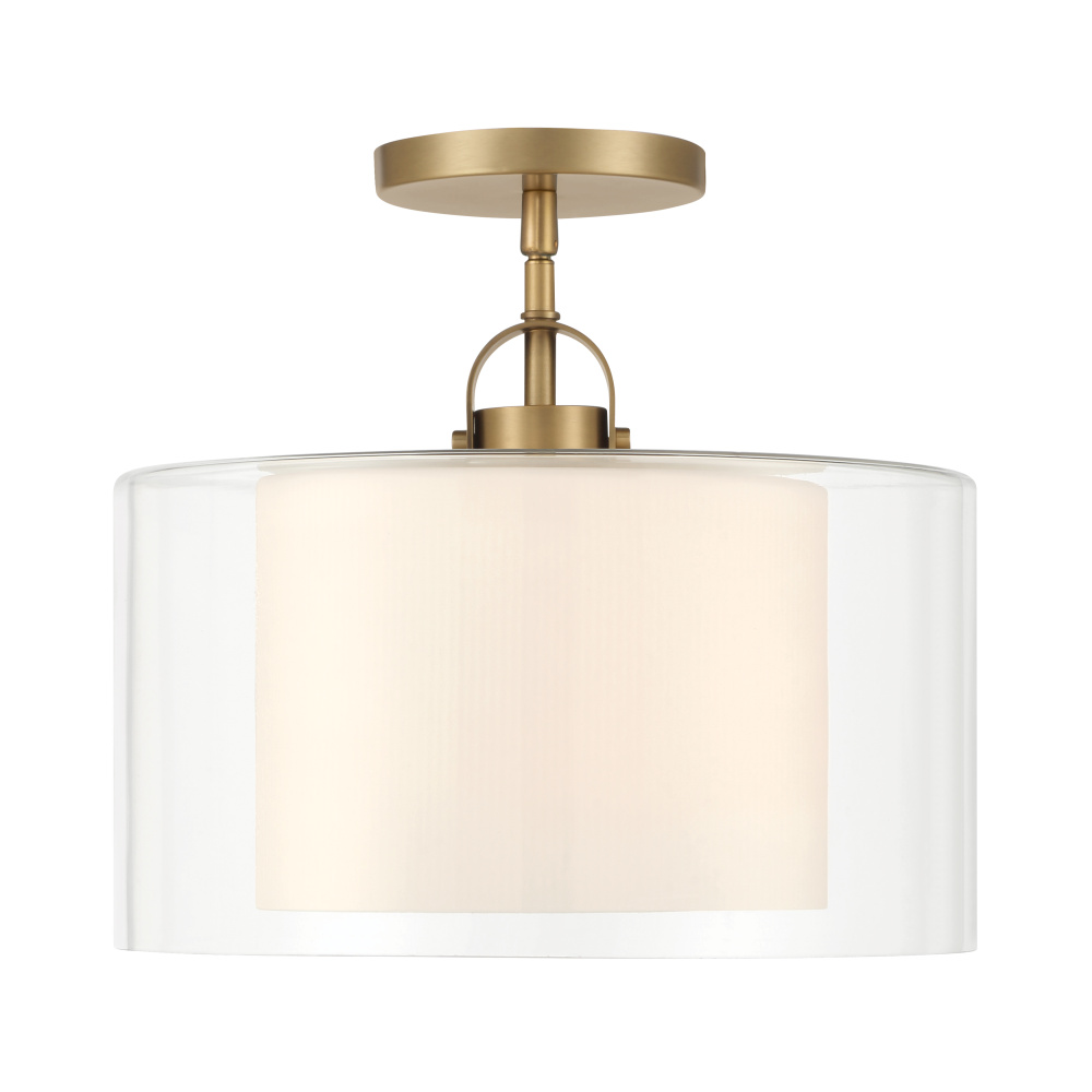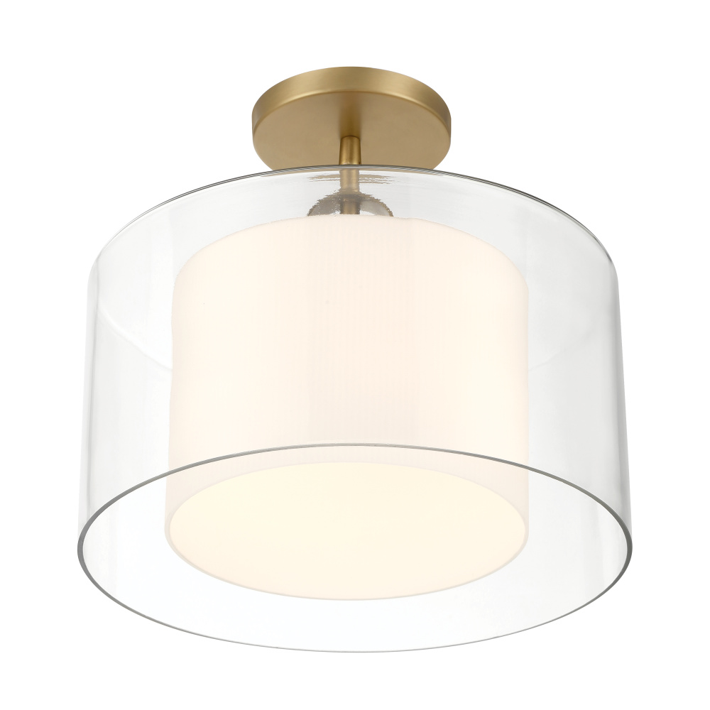 1-Light Convertible Pendant/Semi-Flush Mount - Legacy Brass with Clear and Etched Opal Glass
