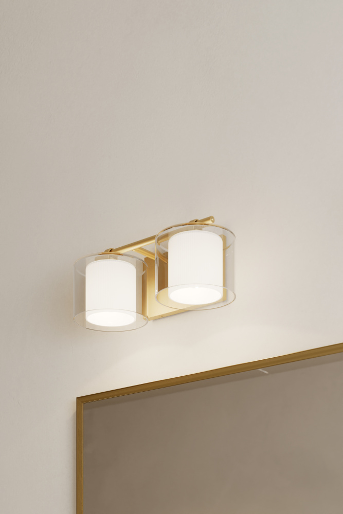 2-Light Vanity - Legacy Brass with Clear and Etched Opal Glass