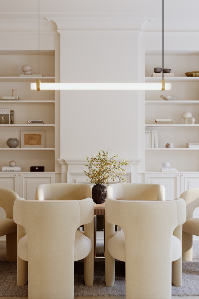 The Sorelle chandelier blends modern lines with warm, inviting illumination.