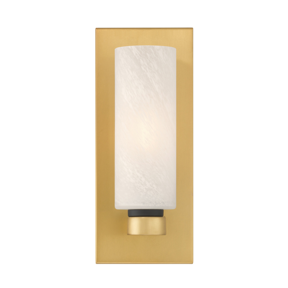 1-Light Wall Sconce - Legacy Brass and Dark Matte Black with Etched Alabaster Glass