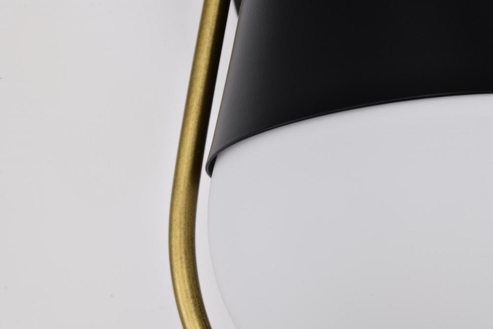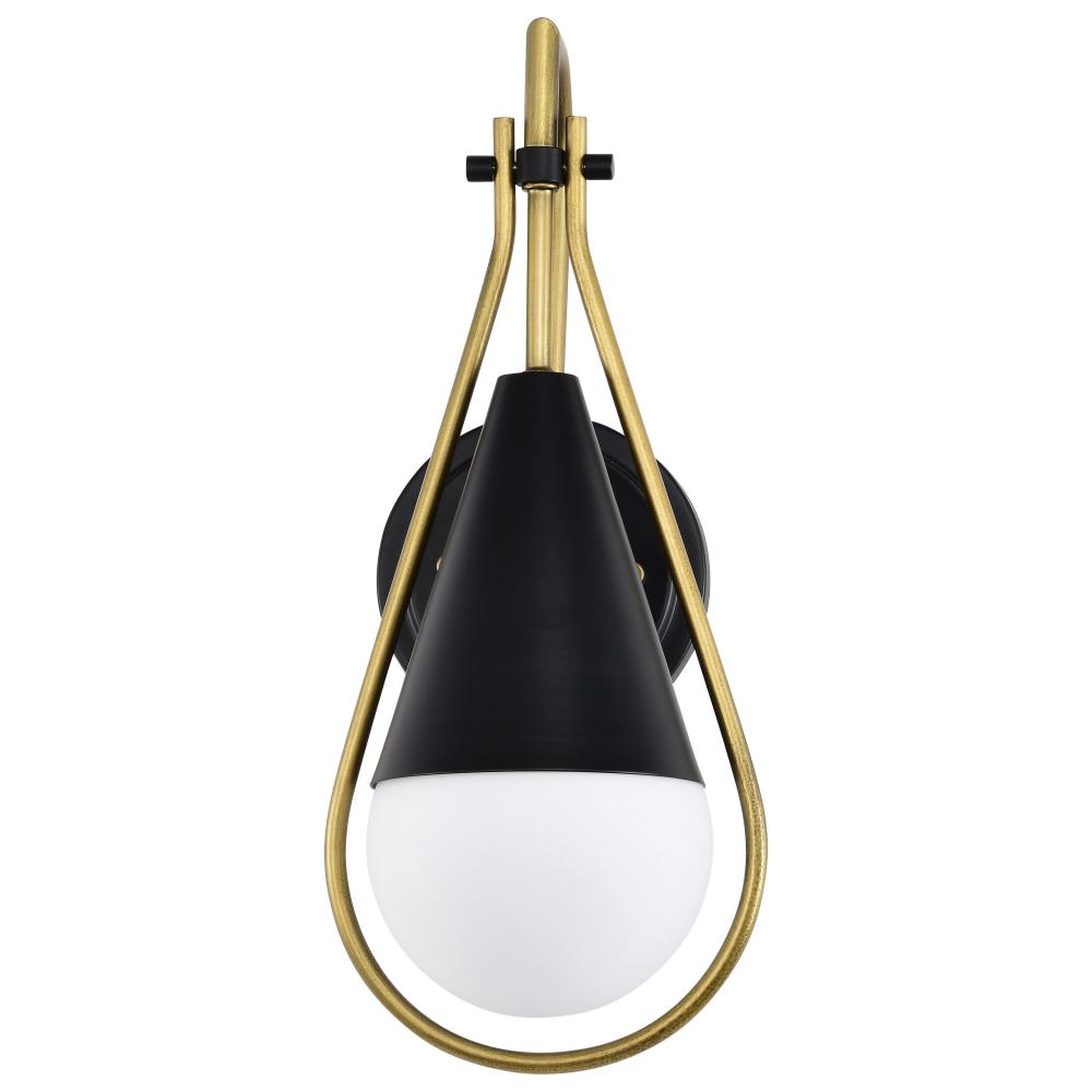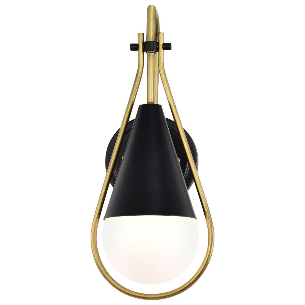 Admiral 1 Light Wall Sconce; Matte Black and Natural Brass Finish; White Opal Glass