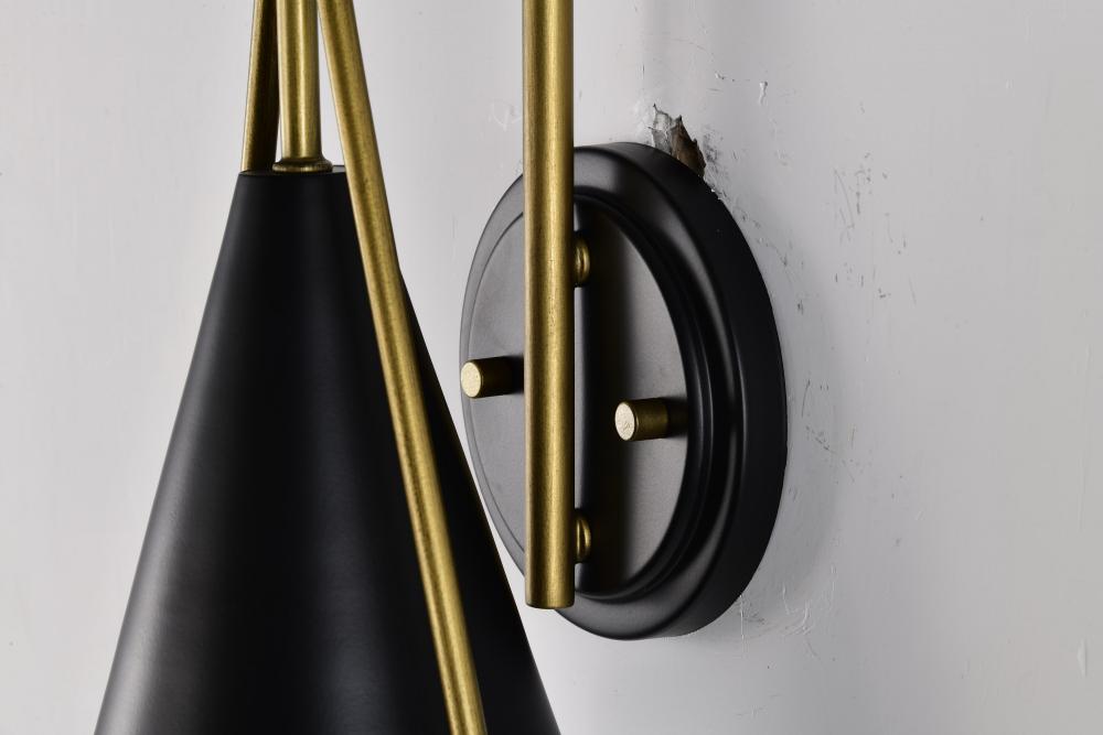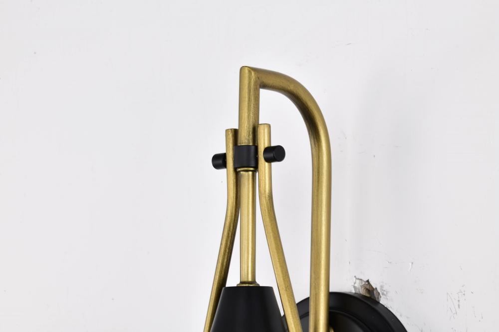 A modern collection with a twist, the Admiral 60-7901 one light wall sconce features a dual finish, unique design, and a fashionable statement for home luminaires. A suspended tear-dropped shape is comprised of matte black with natural brass elements encom