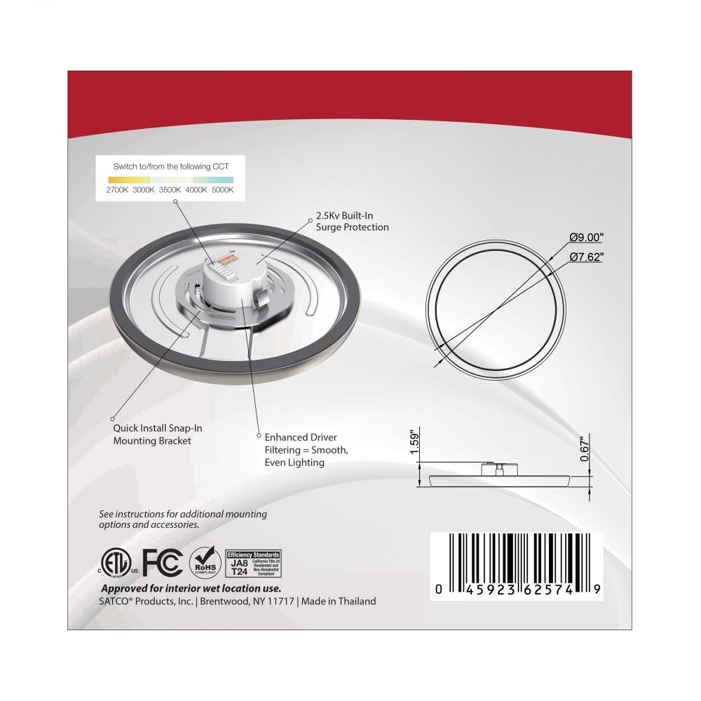 Blink Pro - 13W; 9in; LED Fixture; CCT Selectable; Round Shape; Brushed Nickel Finish; 120V