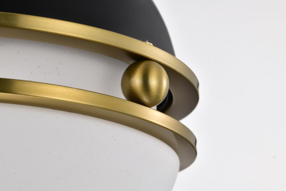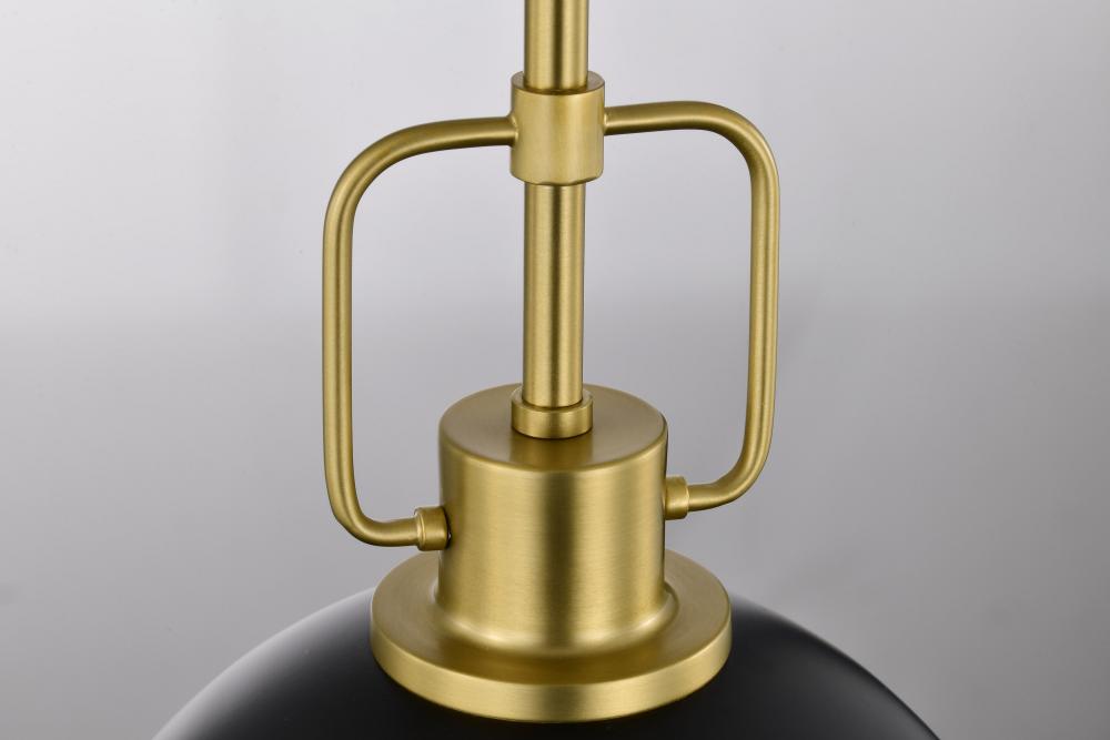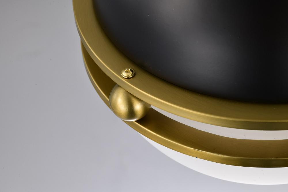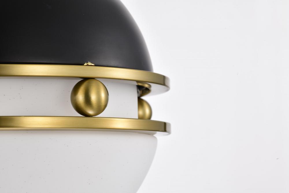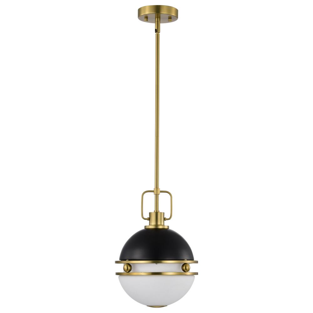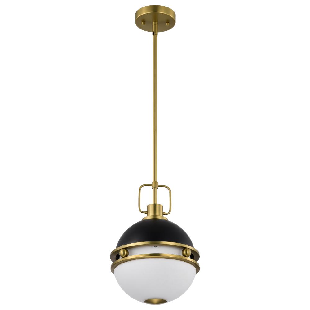 Everton 1 Light Pendant; 10 Inches; Matte Black & Brass Finish; Etched Opal Glass