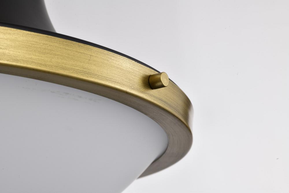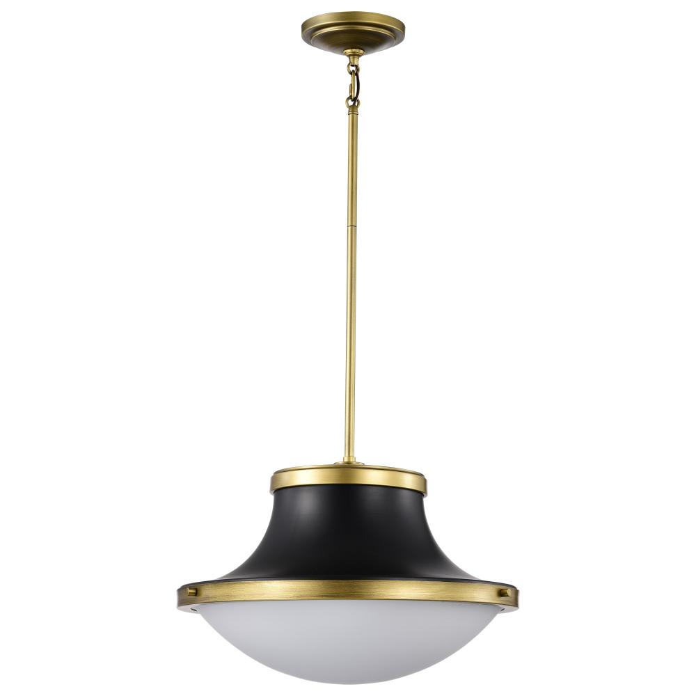 Lafayette 3 Light Pendant; 18 Inches; Matte Black Finish with Natural Brass Accents and White Opal Glass