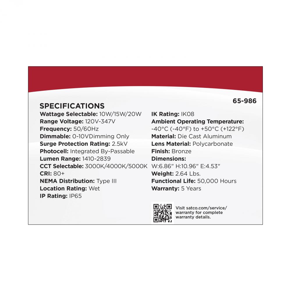 SATCO NUVO's 65-986 bronze LED entryway wall pack offers a sleek and versatile solution for outdoor lighting. Designed with a durable die-cast aluminum construction and an IK08 polycarbonate lens, this fixture ensures reliable performance in demanding