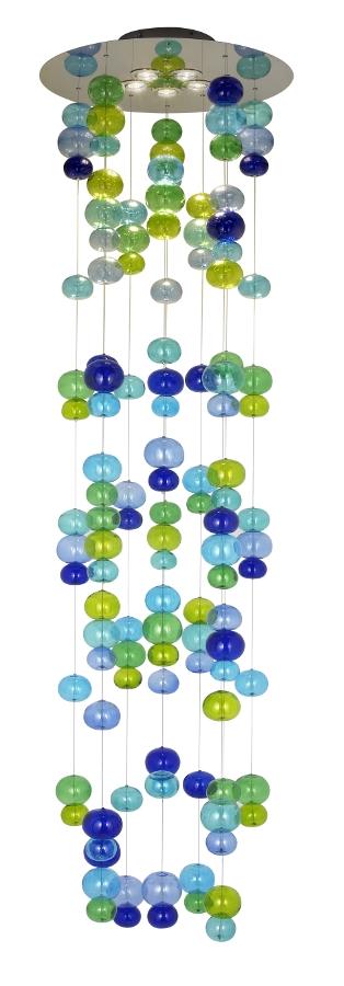 Light and airy, beautifully hand blown bubbles float on almost invisible cord, truly creating a sculpture. Available is a variety of color combinations and two sizes, the ÒbubblesÓ are lit from above and suspended from a stainless steel plate. Mouth-blown in Murano Italy.