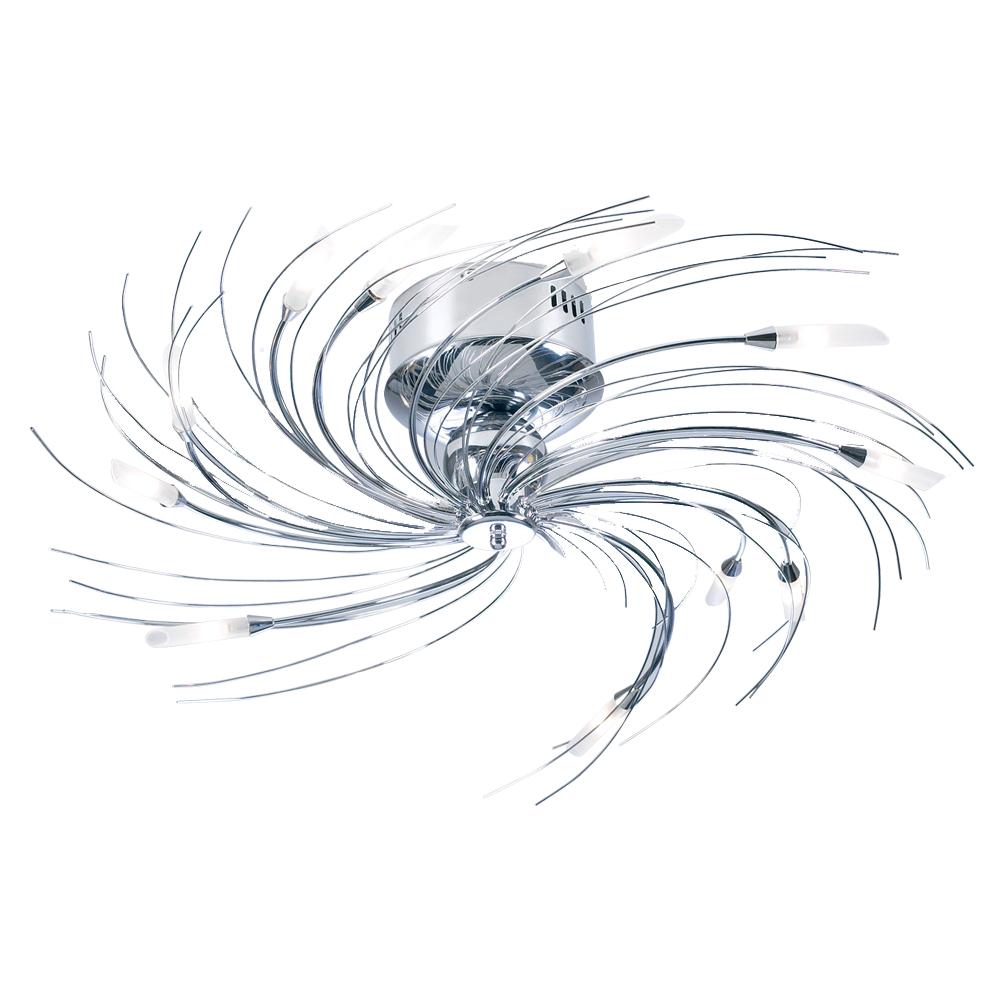 Swirly 12 Light Ceiling Light from the Northstar Collection is a real stunner. Modern contemporary design, 8" in height and 30" wide this would suit all manner of ceilings. 12v using twelve 20w halogen bulbs which are included this is certainly an eye catching fixture. With polished chrome finish it sure will delight.