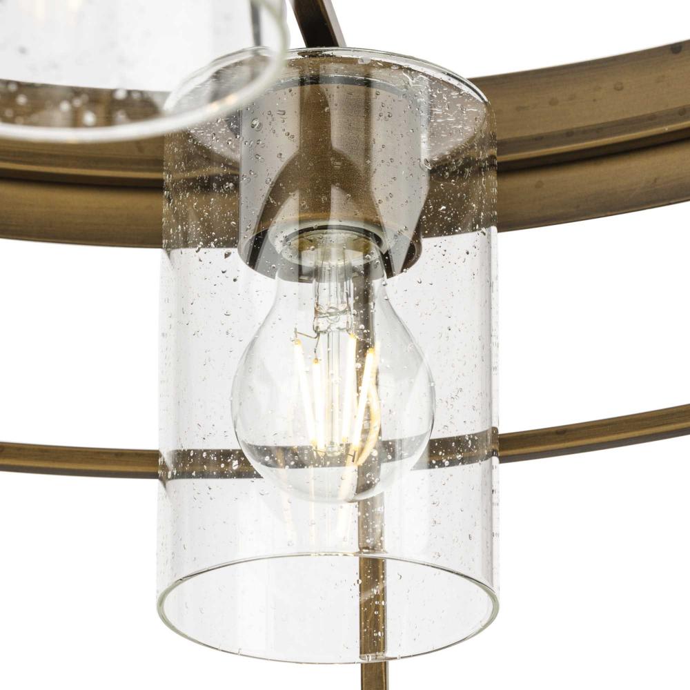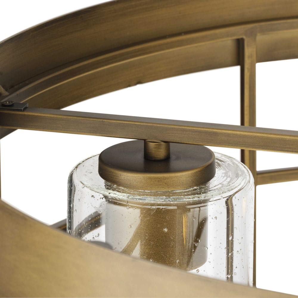 A modern adaptation of a rustic style, Burgess brings authenticity and honesty to modern farmhouse and modern craftsman settings. A geometric surround encloses seeded glass diffusers to deliver warm illumination to any room. This fixture is part of the Progress Lighting Design Series, a lighting collection offering fashionable styles and affordable luxury lighting for the home.