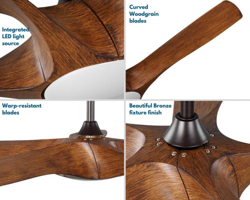 Add a cool breeze to your favorite living space with the Vernal Collection 60-Inch 5-Blade Woodgrain LED Wifi Transitional Indoor/Outdoor Smart Ceiling Fan. Five slightly curved ABS blades are coated in a handsome woodgrain finish that will complement a variety of living areas. The blades are resistant to warping from environmental conditions and offer a long product lifespan. The fan's downrod and ceiling canopy are coated in an architectural bronze finish to complete the transitional design. Enjoy smart living technology by controlling your ceiling fan and light with your smart device or voice control via our Smart by Bond Wifi app. Customize your home oasis by selecting from the fan's 6 speeds, 3 timer selections, light on/off with full-range dimming, and a breeze mode. Fan and app are compatible with Amazon, Alexa, Google Home, and a variety of other smart devices.
