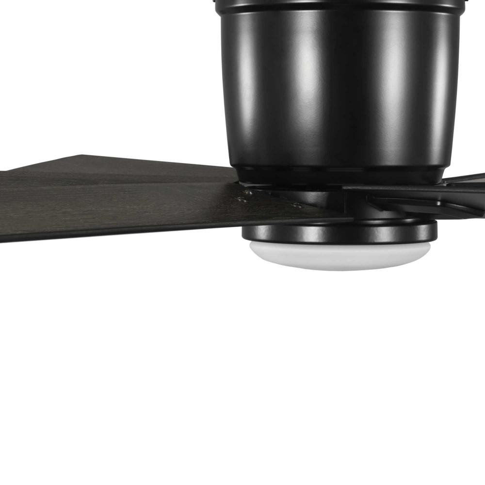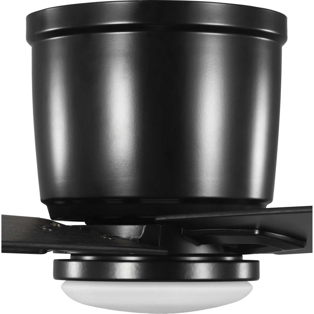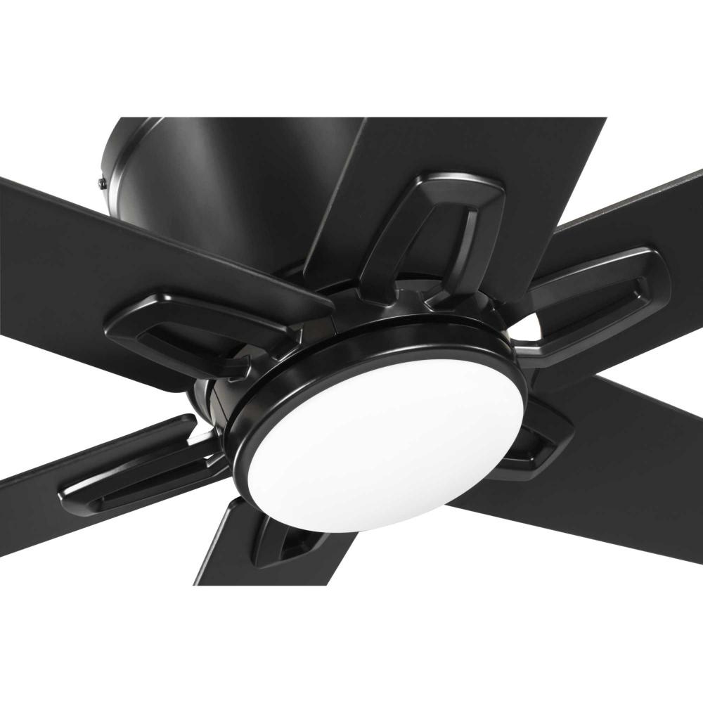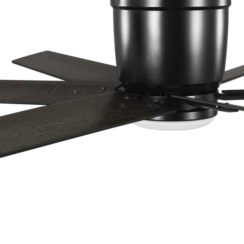 The fan is finished in crisp matte black and features six reversible blades coated in distressed ebony and matte black finish