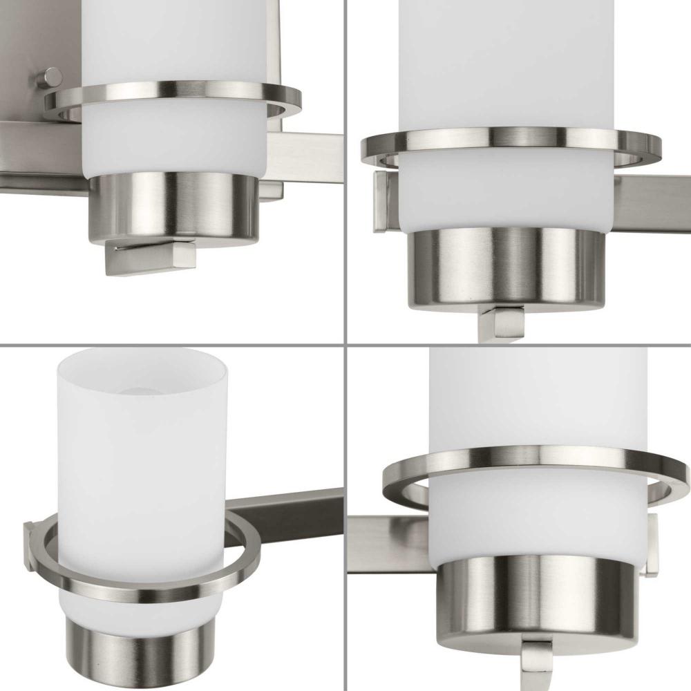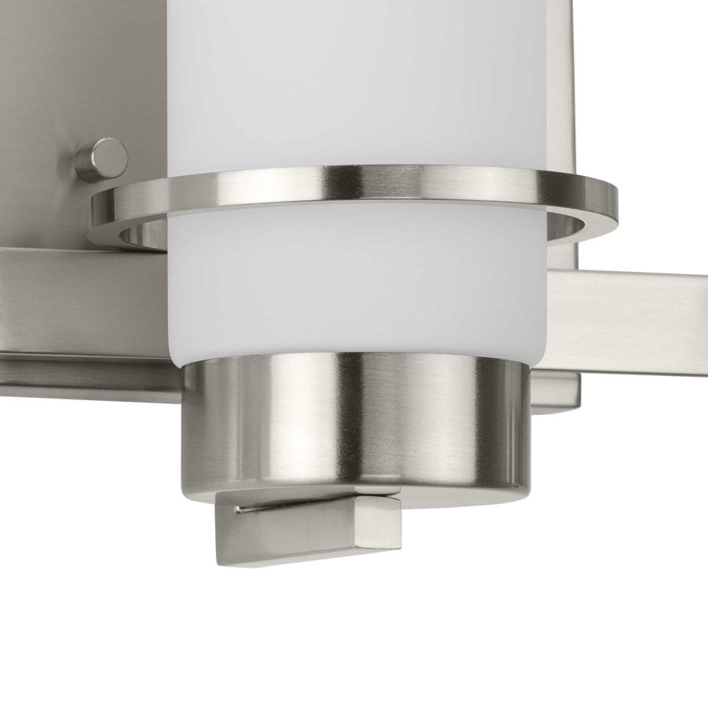 The light is finished in subtle brushed nickel, accenting the light's polished design