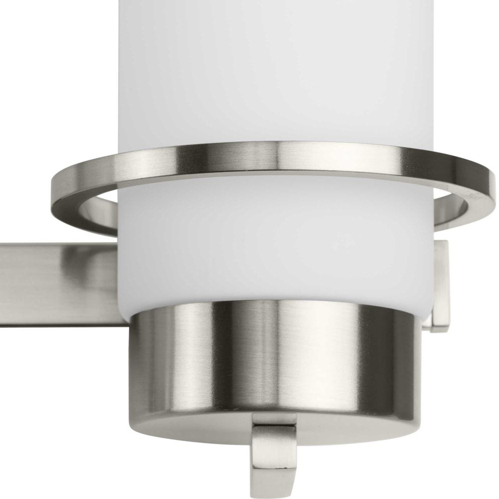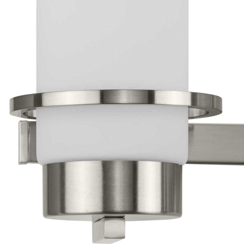 Bring a refreshed sense of style to the bath with Reiss. A polished concentric band accents a simple white glass shade, bringing an elegant appeal to the modern design. The vanity light's polished design brings balance and sophistication to modern farmhouse and contemporary settings.