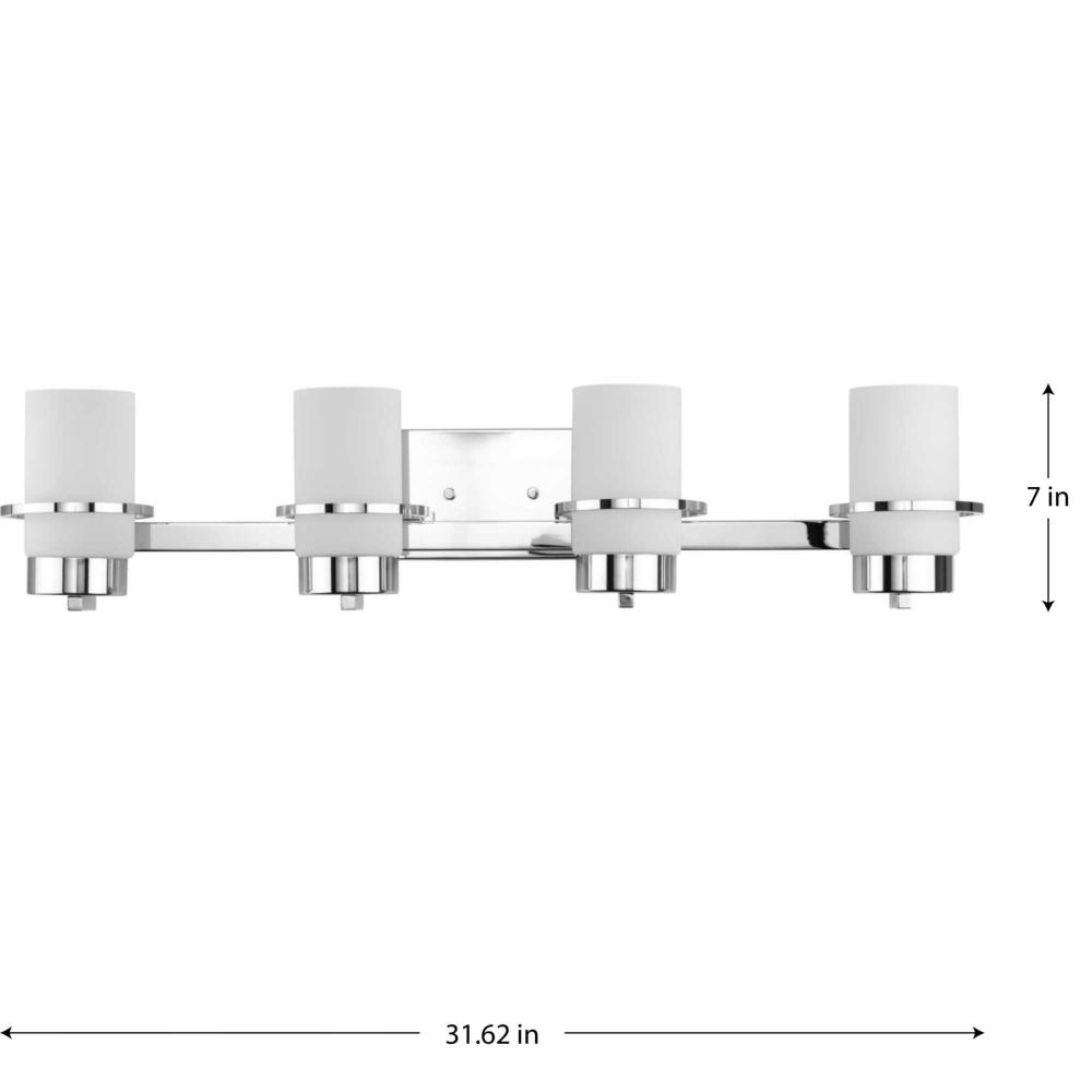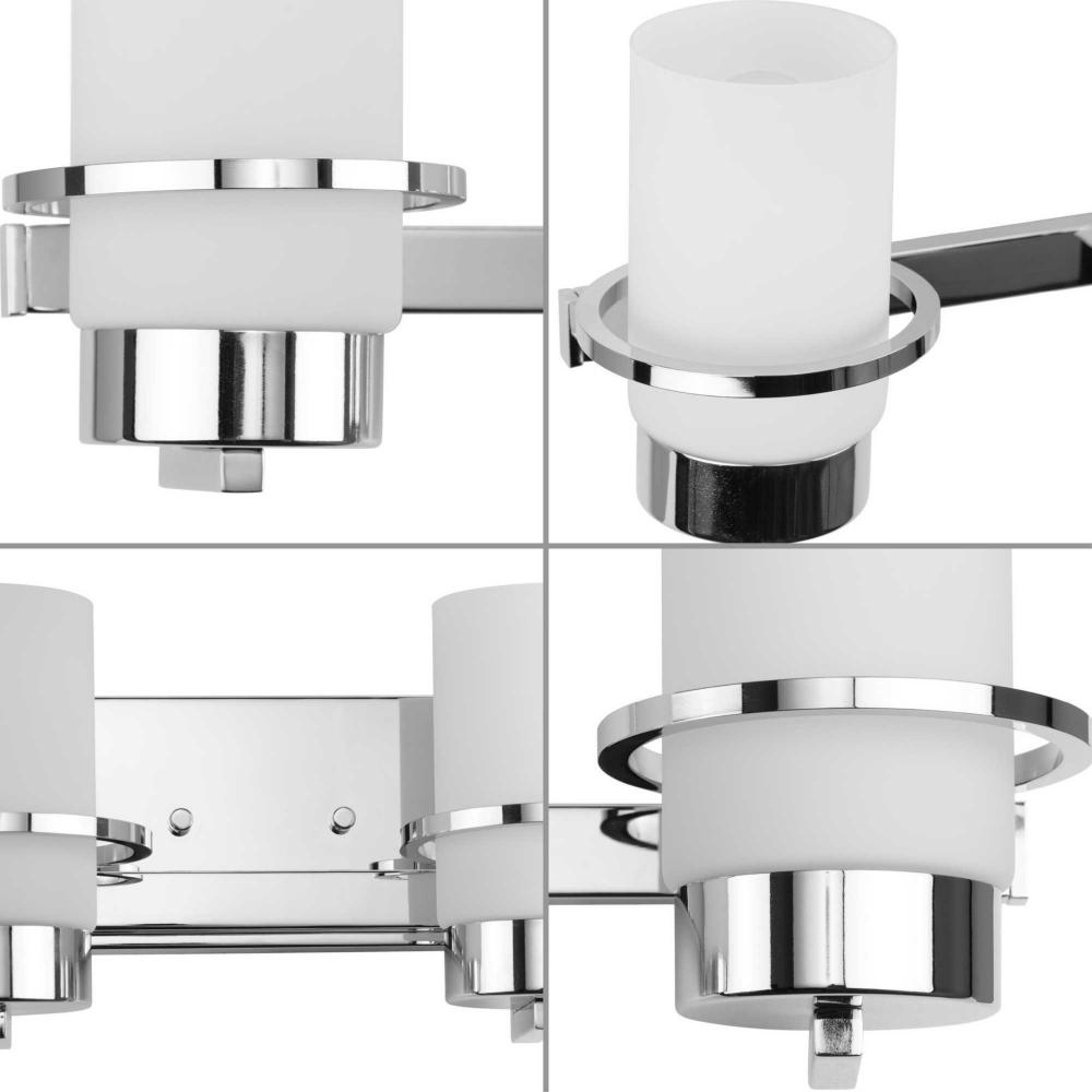 Bring a refreshed sense of style to the bath with Reiss. A polished concentric band accents a simple white glass shade, bringing an elegant appeal to the modern design. The vanity light's polished design brings balance and sophistication to modern farmhouse and contemporary settings.