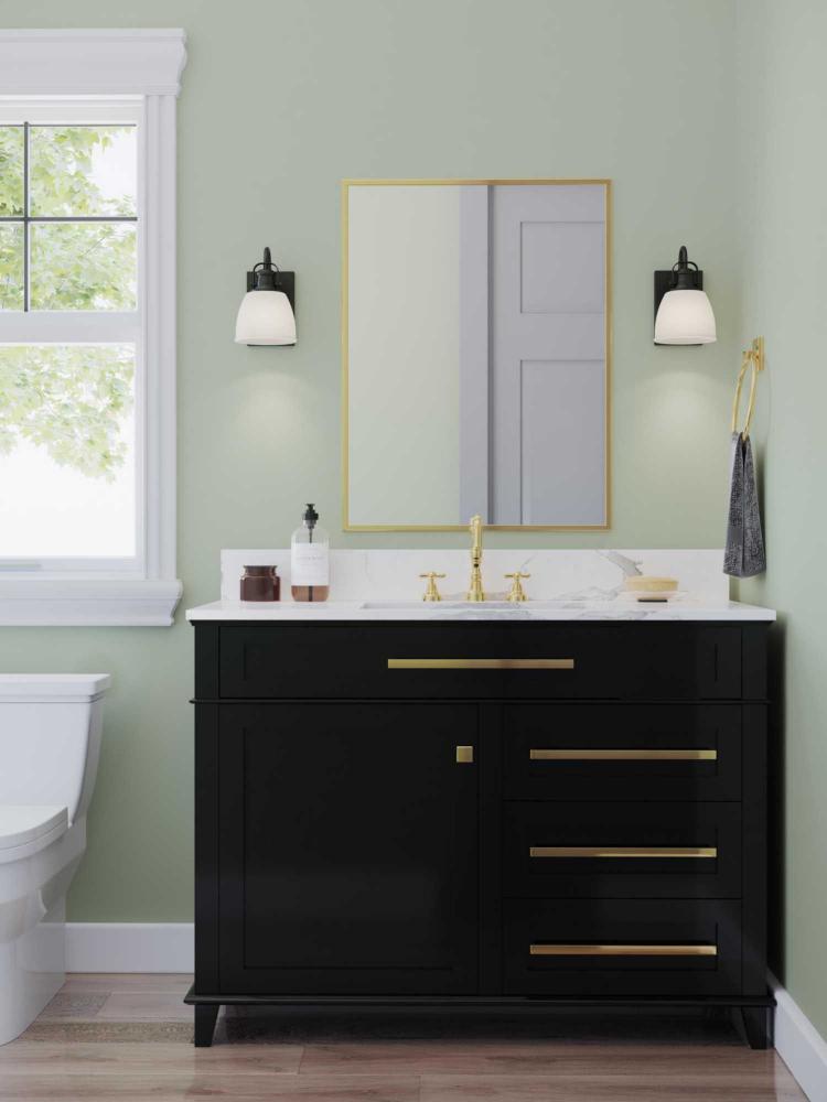 The bathroom light's style is perfect for transitional, farmhouse and coastal décor