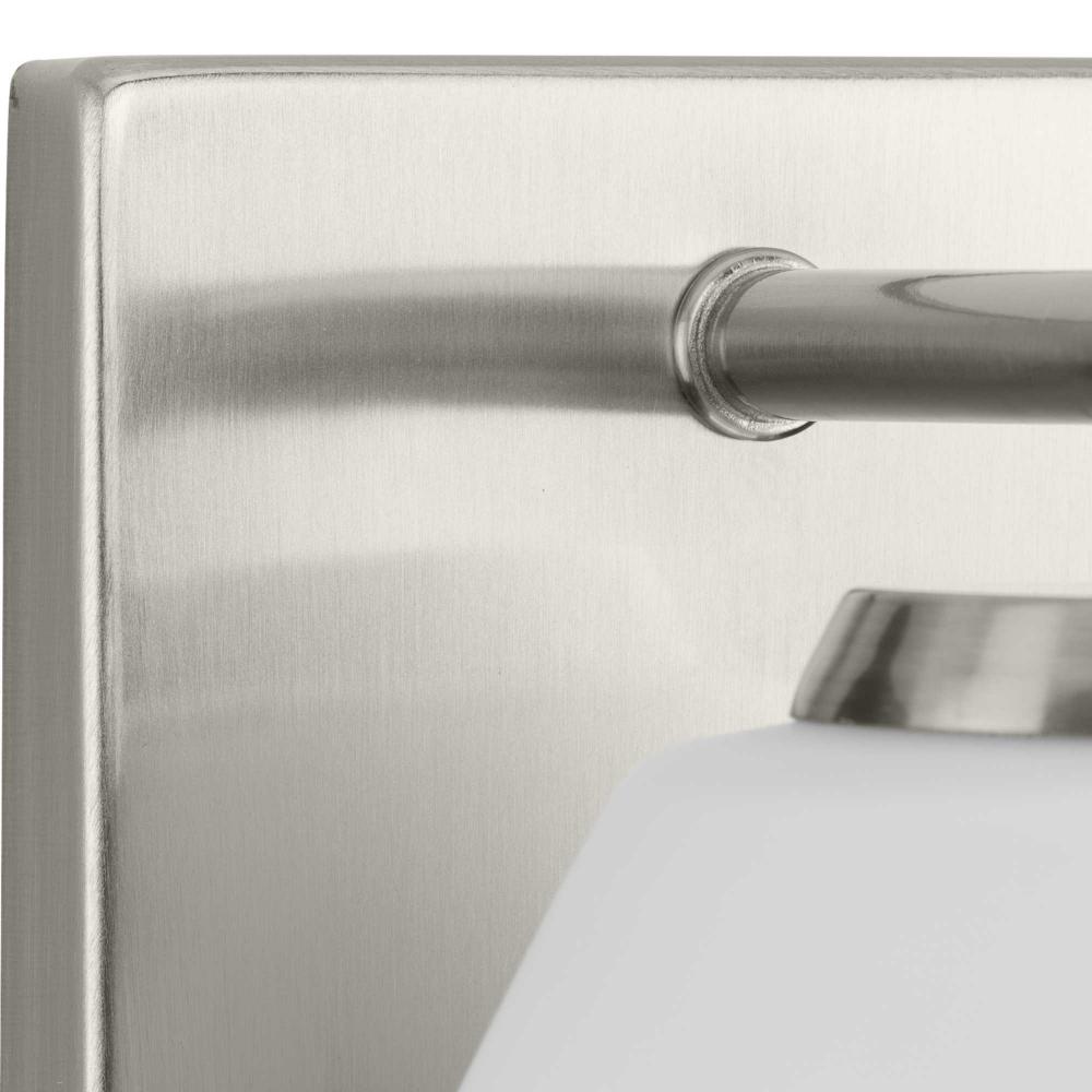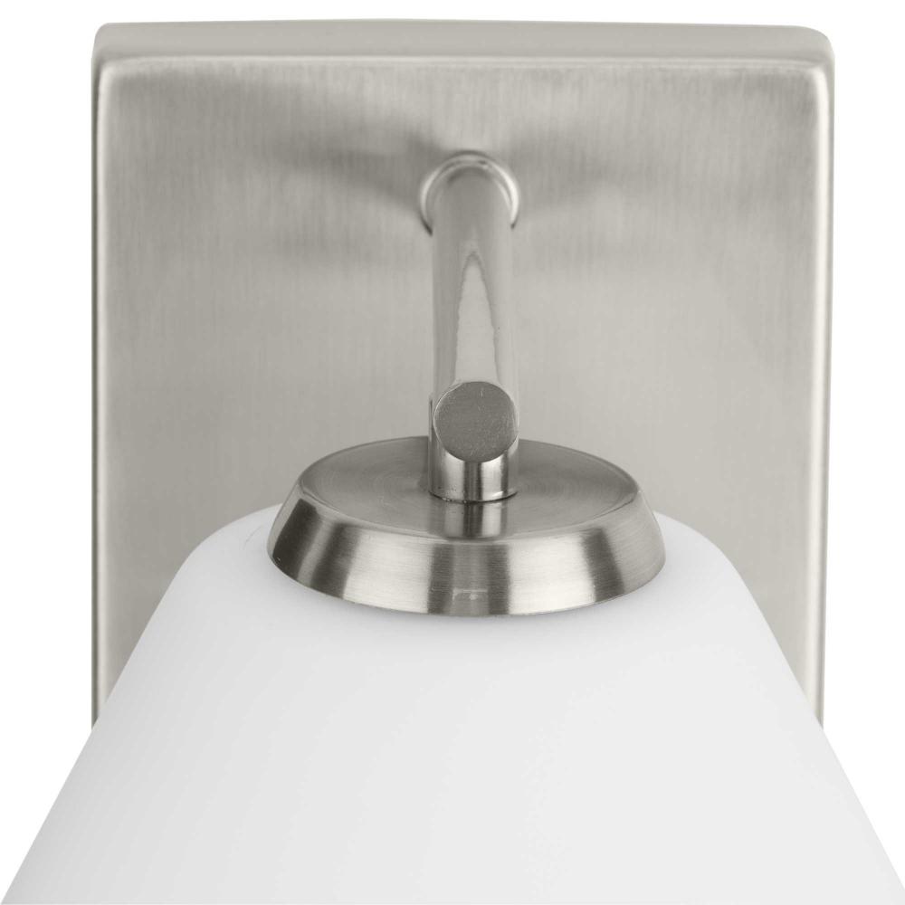 The fixture is coated with a subtle brushed nickel finish, fitting beautifully into contemporary bathrooms