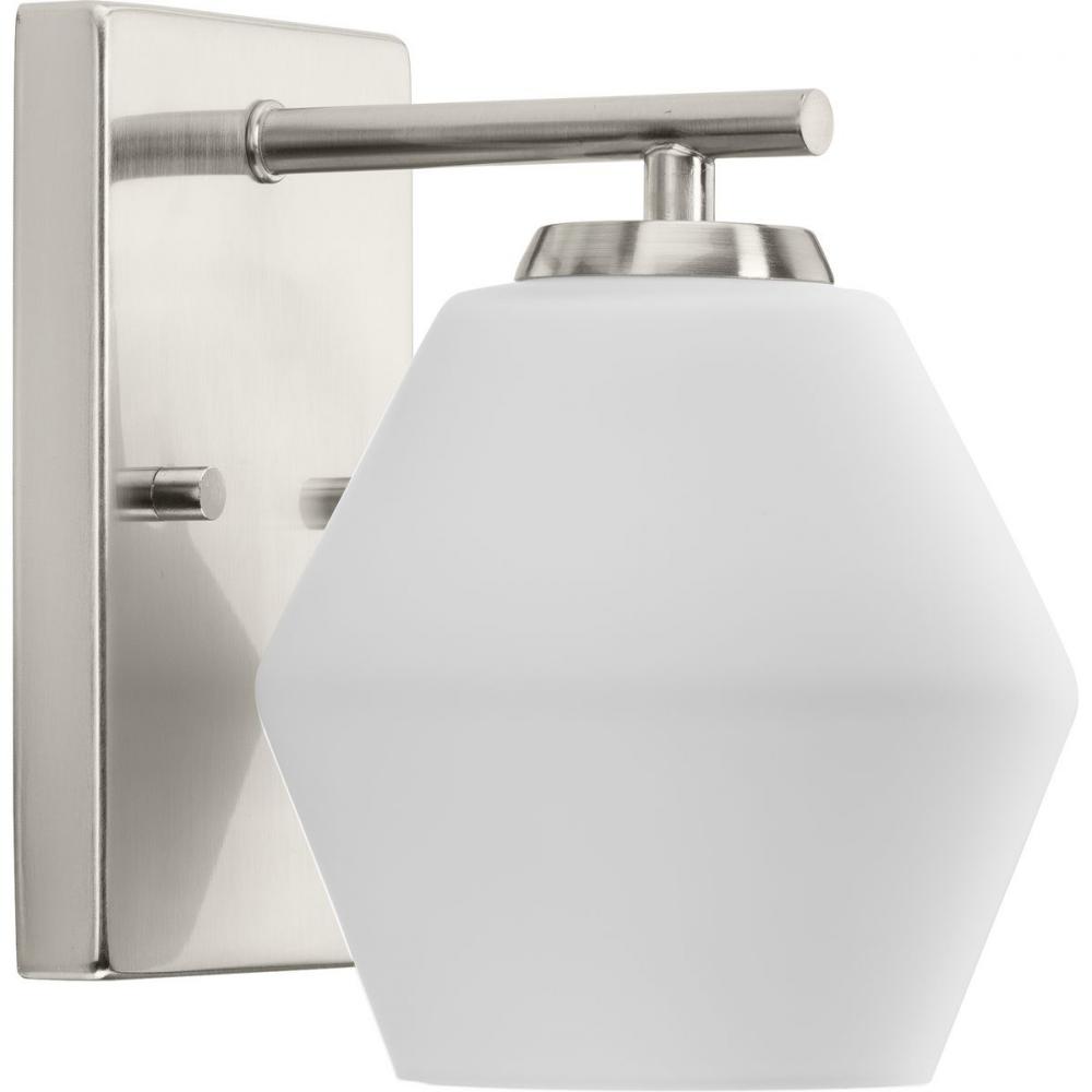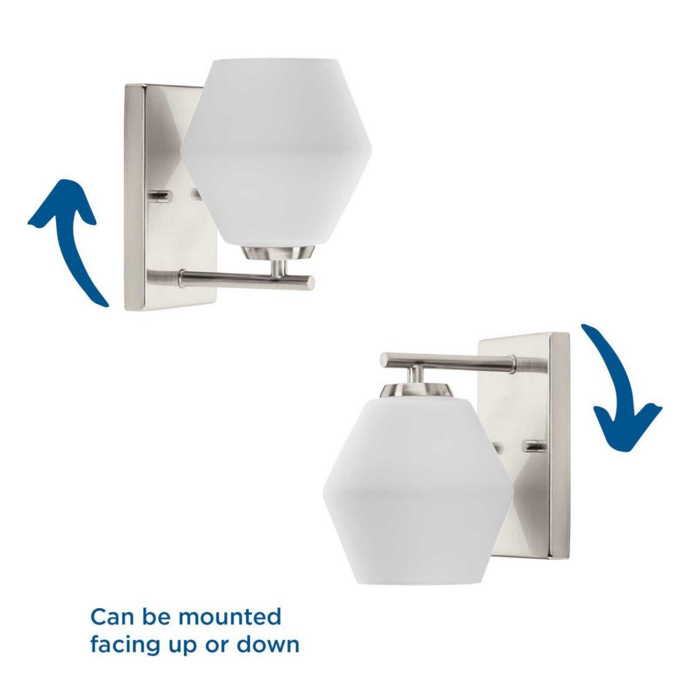 A softened diamond silhouette brings modern appeal to the Copeland Vanity Light. The geometric opal glass shade delivers elegant illumination to bathrooms in mid-century modern and contemporary settings. Mount the light fixture with the glass facing up or down for more design flexibility.